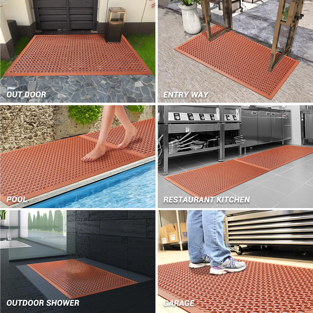 Outside Door Mat,We use the good quality material ,Made of high-grade, eco-friendly rubber, sustainable and durable Anti fatigue floor mat,The holes and perforated design of this all purpose entrance doormat traps dirt, preventing it from spreading. Simply hose the mat with water to clean up any dirt or grease Rubber Floor Mat, Reduce the amount of slippery liquids and oils left on the floor.Grease and water-resistant rubber help keep the entrance mat in place, especially when used in high-traffic areas Indoor Outdoor Rubber Mat, Ideal for uses in bar, kitchen, restaurant, outdoor, boat, as well as warehouse or other industrial areas where moisture and heavy foot traffic are a problem Non slip mat, Help to prevent dangerous accidents, size: 60" x 36" x 0.4", Spend most economical money buy this best floor mat, you will never regret for your choice when you got our mat. Providing premium quality products for your home and office without the heavy price tag charged by many of our competitors.