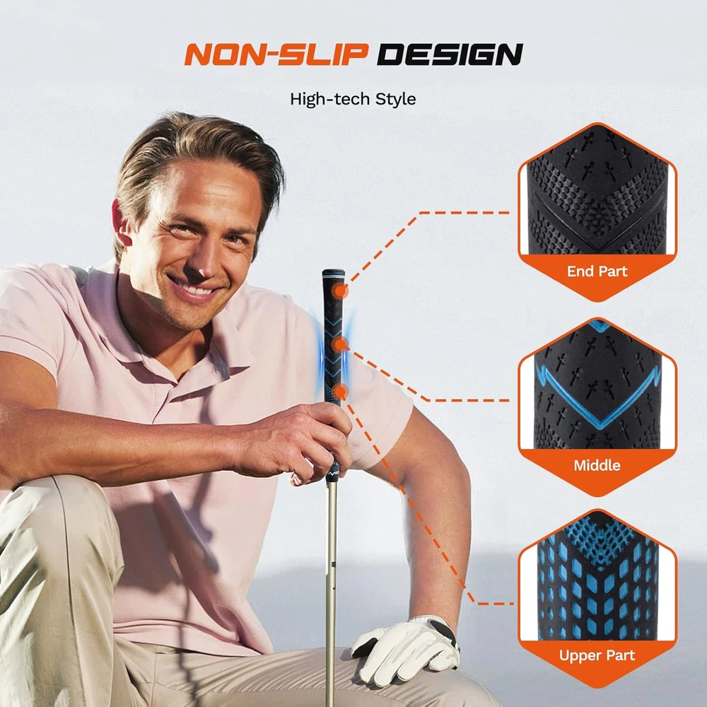 Rubber Golf Grips 13 Pack, High Traction, Non-Slip, Advanced Texture, Choose from 13 Grips or 13 Grips with Regripping Kit, Standard/Mid/Jumbo Size, 4 Colors Available RG01 Golf Club Grips High-Performance Rubber Material: The rubber material we use excels in both shock absorption and anti-slip characteristics, which ensures stability in every swing Low Taper Design: Low taper design used on the lower part of the grip allows less tension on your hands to guide the club better, which reduces grip pressure for better control. The swing is smoother and more powerful All-Weather Control: The soft micro-texture of the golf club grips enhances grip and combines with the outstanding non-slip nature of the High-Performance Rubber Material, allowing you to enjoy the fun of golf anytime, anywhere Multiple Choices: Three sizes: standard/mid/jumbo. four colors: Red, White, Blue, Green. Two bundles: Base set; Deluxe set(includes full regripping kit) Caring Service: If you have any problems when purchasing Full Choice products, please reach out to us in time Product Description The size of the grip is chosen based on the palm size and gripping preference. Generally, a thicker grip diameter enhances grip strength while a thinner grip diameter offers higher flexibility. Beginners are recommended to opt for a larger grip diameter to minimize hand fatigue and improve swing stability. It is advisable to read product reviews and seek recommendations from experienced golfers or professional instructors before purchasing golf grips. Their insights can be valuable for novices in selecting the appropriate grip product. Friction Patterns: The rubber grip is designed with unique deboss printings and friction patterns, resulting in enhanced grip performance. These patterns provide excellent traction and control, allowing users to maintain a secure grip during various activities. Aim Assistance: With its pointy patterning and logo, the rubber grip offers improved grip alignment, leading to enhanced aim assistance. Users can confidently handle their equipment, knowing that the grip will help them achieve precise and accurate shots. Abrasion Resistance: Crafted from premium rubber and a special formula, this grip demonstrates exceptional durability and resistance to abrasion. Even under intense wear, it maintains its grip performance, ensuring long-lasting usability. Experience superior grip, improved aim, and reliable durability with this high-quality rubber grip. It is the perfect accessory for anyone seeking enhanced performance and control in their activities. These all-weather golf club grips feature a premium rubber compound for a secure and moisture-resistant hold. The corded texture enhances surface texture control, making it ideal for golfers struggling with grip consistency or sweaty hands. The reduced taper design promotes a relaxed grip, reducing hand tension and fatigue. Overall, these grips offer all-weather performance, surface texture control, and enhanced comfort and performance on the golf course. Color Blue Grip Type Blue (13 Grips with Solvent Kit) Grip Material Rubber Grip Size Standard Product Dimensions 10.6"L x 1.1"W Item Dimensions L x W 10.6"L x 1.1"W Material Type Free Rubber, Latex Free, BPA Free, and any other materials not explicitly listed Shipping Fast shipping is very important for us. Our standard US shipping service is FREE. Your order will be shipped within 2-3 business days upon full payment received. Your order will be delivered within 2-3 business days after the handling time. We only ship to the confirmed PayPal address. We reserve the right to cancel any order for any reason at any time. We are not responsible for undeliverable addresses. Returns and payment We offer a 30 days return policy from checkout winning date. We allow only PayPal as payment method FeedBack Your feedback very important to us, after you get your package and you are satisfied with our service please leave us positive feedback If you have any problem with your order / any questions please before leave any type of feedback For any questions, using eBay contact system Please visit our eBay store to check out other items for sale! Thank you for shopping at our store.