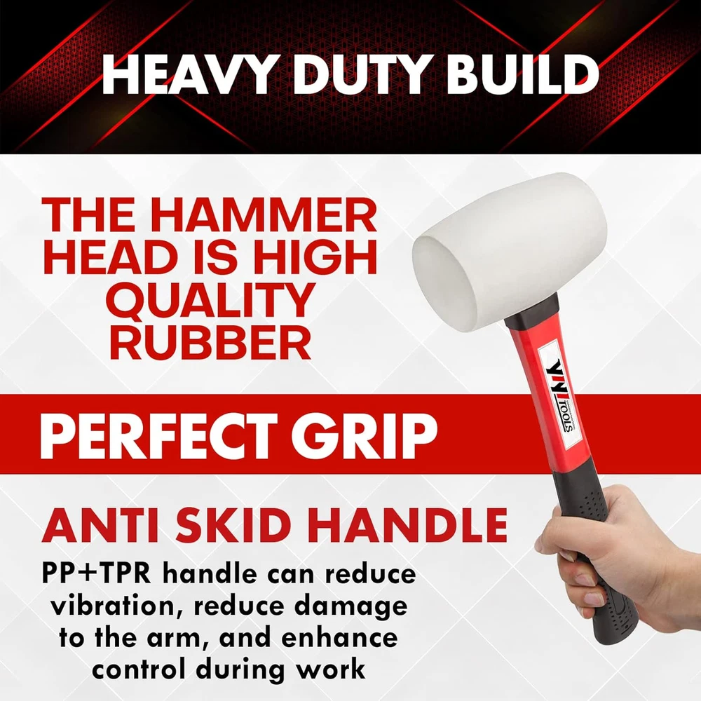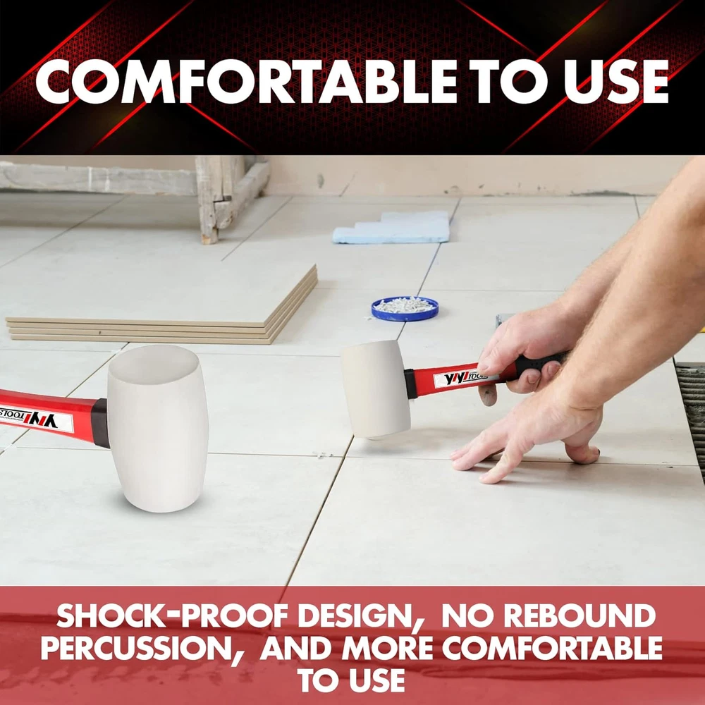 16oz Rubber mallet: Each pack comes with a 16oz rubber hammer that is shockproof, wear-resistant, and made for long term use while being versatile and easier to use making them ideal for any job. No Rebound Or Sparks: Soft, nonslip rubber grip is a directly integrated piece of the handle that can never pull loose. Made For Daily Use: The rubber mallet head is made of rubber,Exterior poly jacket protects handle core from missed strikes . Versatile and Multi-Purpose: Our multifunctional hammers use a double percussion surface design,Made for construction, woodworking, and automotive applications. Safe And Secure Grip: We designed this impact-absorbing hammer set with ergonomic handles that provide a safe, secure, and comfortable grip. They are non-slip and anti-skid so you can keep hammering away with peace of mind. Make Hammering Simpler & More Convenient With YIYITOOLS Rubber Mallet! At YIYITOOLS, we wanted to bring you essential striking tools that would make everyday life simpler. This is why we combine quality materials to bring you our shockproof rubber hammer. The hammer heads are use hammer,High-strength Fiberglass handle core helps absorb vibrations Versatile, Durable, & Functional – Suitable For Any Job Or DIY Project From tiling floors to roofing, our dead blow hammers with ergonomic hammer handles have you covered. They are the perfect choice for any DIY projects and on-site jobs making them just right for both casual and professional use. Features You’ll Love: - Resistant to rust, corrosion, and deforming for long term use - We use quality rubber that offer high temperature resistance - Ergonomically designed handle provides a secure and comfortable grip - Suitable for use construction, woodworking, and automotive applications - Each pack comes with 16oz rubber mallet Make Hammering A Breeze With YIYITOOLS Solid, Sturdy And Comfortable To Use Hammer Set!