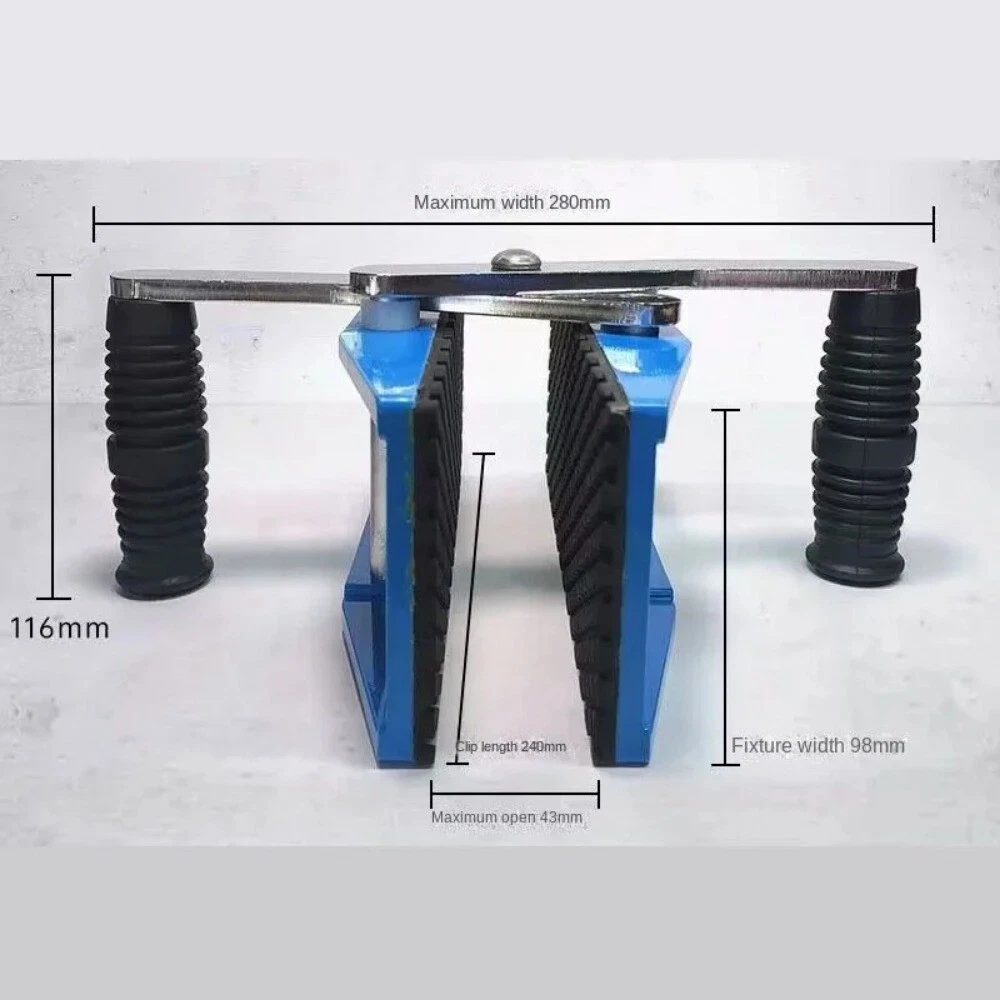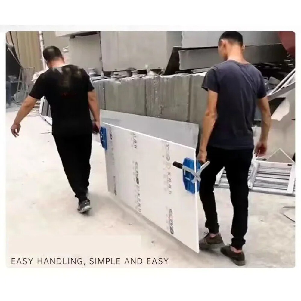 Handling Large Slab Fixtures Rubber Lined Two-Hand Stone Gripper, Handling Transporting Glass/Metal/Granite lift heavy objects Product name: double clip Product function: lift plate handling Product material: aluminum substrate Clip thickness: 5mm thicker Clamping range: 0~40mm Maximum load: 350kg Applicable materials: smooth surfaces such as wood, glass, ceramic tile, slate, board, etc. When transporting, 2 units are used as a pair, and cannot be transported separately. 2 or 4 people can lift the board at the same time.