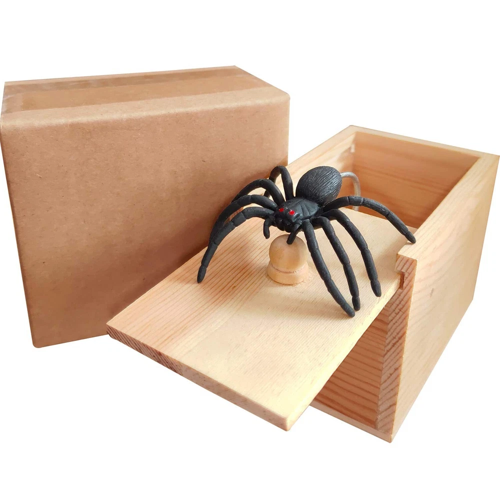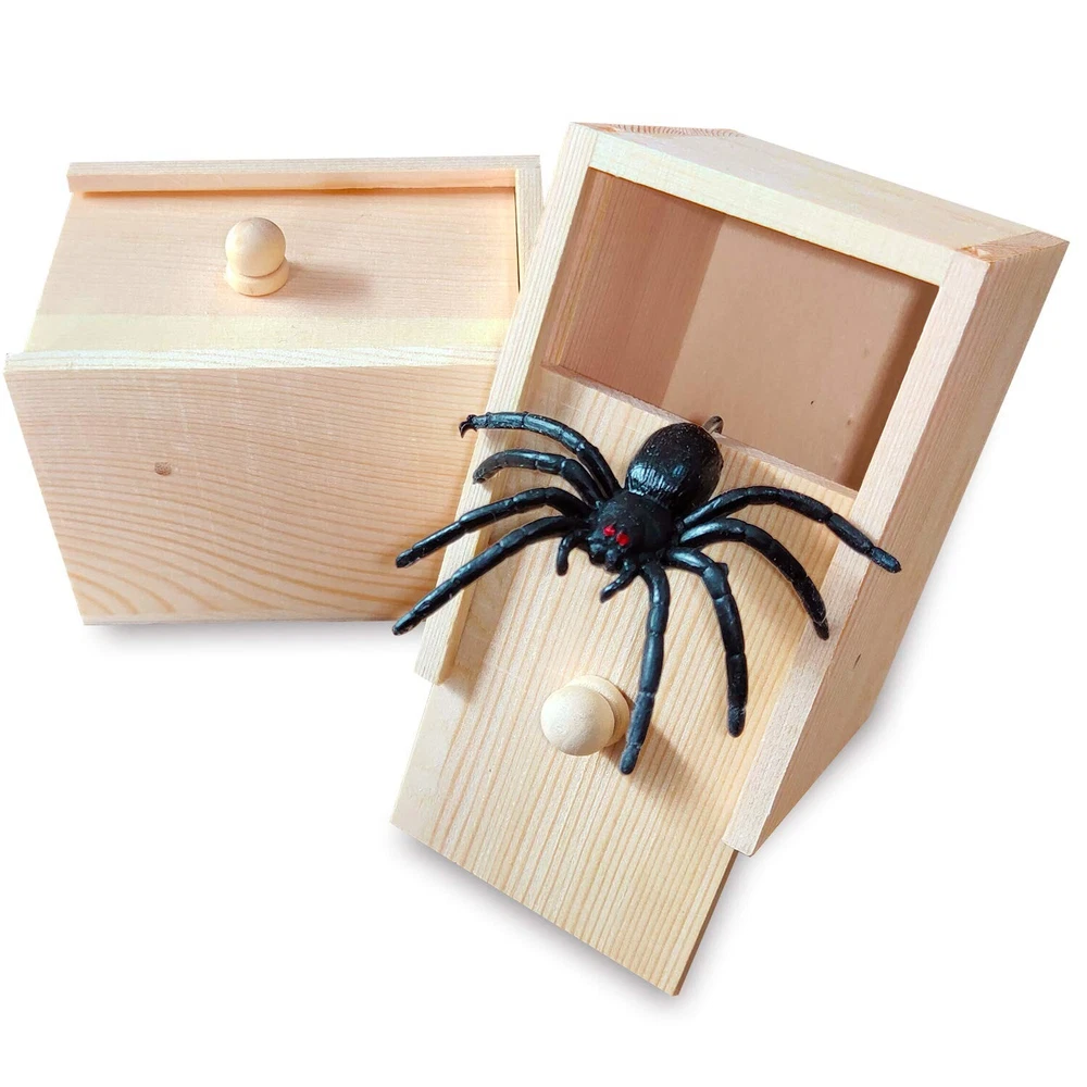 Rubber Spider Prank Surprise Box,Handcrafted Wooden Surprise Box, Fun Practical Surprise Joke Boxes,SpiderBox-Single Product Details Product Dimensions: 3.54 x 2.28 x 2.48 inches Item Weight: 2.11 ounces Manufacturer: AHCAI Great prank prop, traditional and effective fright prank. Perfect for kids, adults, men, or women. Terrorizing fun for all ages! Festive celebrations, birthday parties, family gatherings, company dinners. Put it in a prominent place to arouse the curiosity of others. You just have to wait and enjoy the frightened expressions on other people's faces. Then you can laugh. When your prank victim can't wait to slide the top cover to open this prank box, a lifelike rubber spider will jump out with wriggling legs and staring red eyes to gently touch their fingers. The screams came immediately. Then there was a roar of laughter. You can give this fun prank prop to almost anyone. Even the most daring will be startled. Our spider box prank gift box handcrafted from natural wood materials, use environmentally friendly non-toxic adhesives. Note: Harmless pranks can make our lives more interesting, But Please Stay Away From the elderly or people with cardiovascular disease!