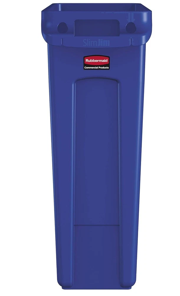 Rubbermaid 23 Gallon Blue Recycling Trash Can Vented Slim Jim Durable Design Capacity: 23 Gallons Color Blue Recycle Opening Mechanism: Open-Top Material: Plastic Recommended Uses For Product Commercial Room Type: Garage, Kitchen, Bathroom Special Feature Vented, Sturdy, Heavy Duty Shape: Rectangular Finish Type: UV Stabilized Gel Coat RECYCLE: Blue color and recycling symbol for improved waste diversion EFFORTLESS BAG REMOVAL: Venting channels make removing liners from the container up to 80% easier, improving productivity and reducing the risk of injury. TRASH BAG CINCHES: 4 bag cinches secure liners around the rim of the container and create quick, knot-free liner changes. ERGONOMIC HANDLES: Robust handles at the base and rim of the container resist tearing and improve control while lifting and emptying. STRUCTURAL RIBBING: Rib-strengthened rim resists crushing while the step design prevents jamming when nested. HEAVY DUTY CONSTRUCTION: Crafted of the highest quality commercial-grade materials for superior durability PERFECT IN ANY SPACE - Great in any environment, from commercial businesses and restuarants, to your own home kitchen, garage, or bathroom. SPACE SAVING SHAPE - Tall and slim profile of the container allows it to save space and stay out of your way Return Policy: We offer a 30 day return policy from the receiving date. Please contact us for a Free Return Label. Please use our return label so it will go back to our supplier and we can do a refund or replacement afterwards. Feedback: Your satisfaction is very important to us! If you have any problem with your order, please contact us and we will do our very best to make you satisfied. As long as you are happy with your purchase, please leave a positive feedback for us. We will always leave you a positive feedback in return. If you have any problem with your purchase, please do not leave a negative feedback. Please Contact us ... and your issue will be solved quickly and positively We are a small family-owned business trying to make a living, not a huge company that does not care ... We will ALWAYS do our best for you!