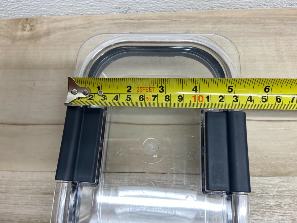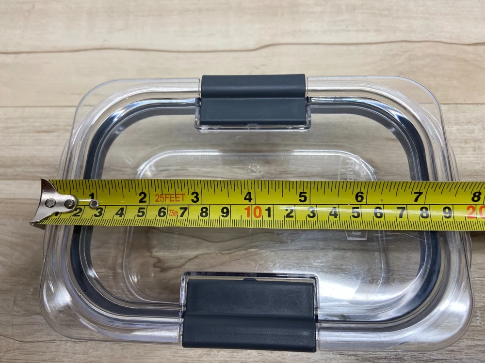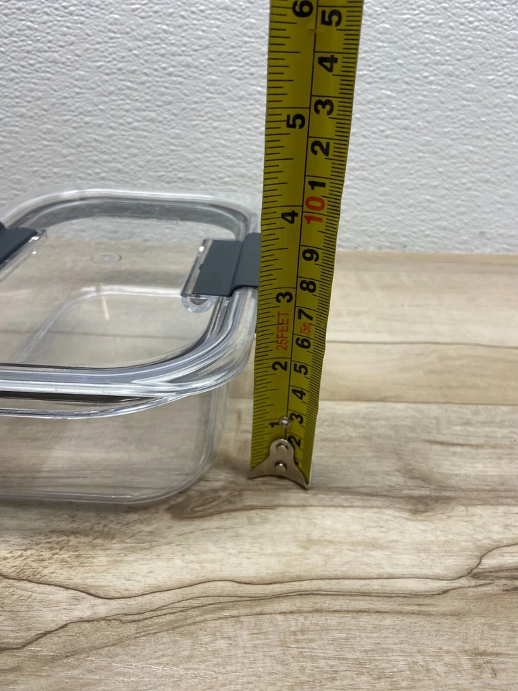 Item Width: 7 in Personalize: No Character: N/A Theme: N/A Material: Plastic Item Length: 5in Item Diameter: n/a Features: Airtight Manufacturer Warranty: n/a MPN: N/A UPC: N/A Capacity: 760 ml Item Depth: n/a Brand: Rubbermaid Color: Clear Lid Type: Snap Lid Number of Items in Set: 1 Model: n/a Type: Food container Country/Region of Manufacture: United States Department: Teens Style: N/A Shape: Rectangular gtin13: N/A Seller Notes: “Very good condition” Character Family: N/A Item Height: 3in Set Includes: Lid Pattern: Solid