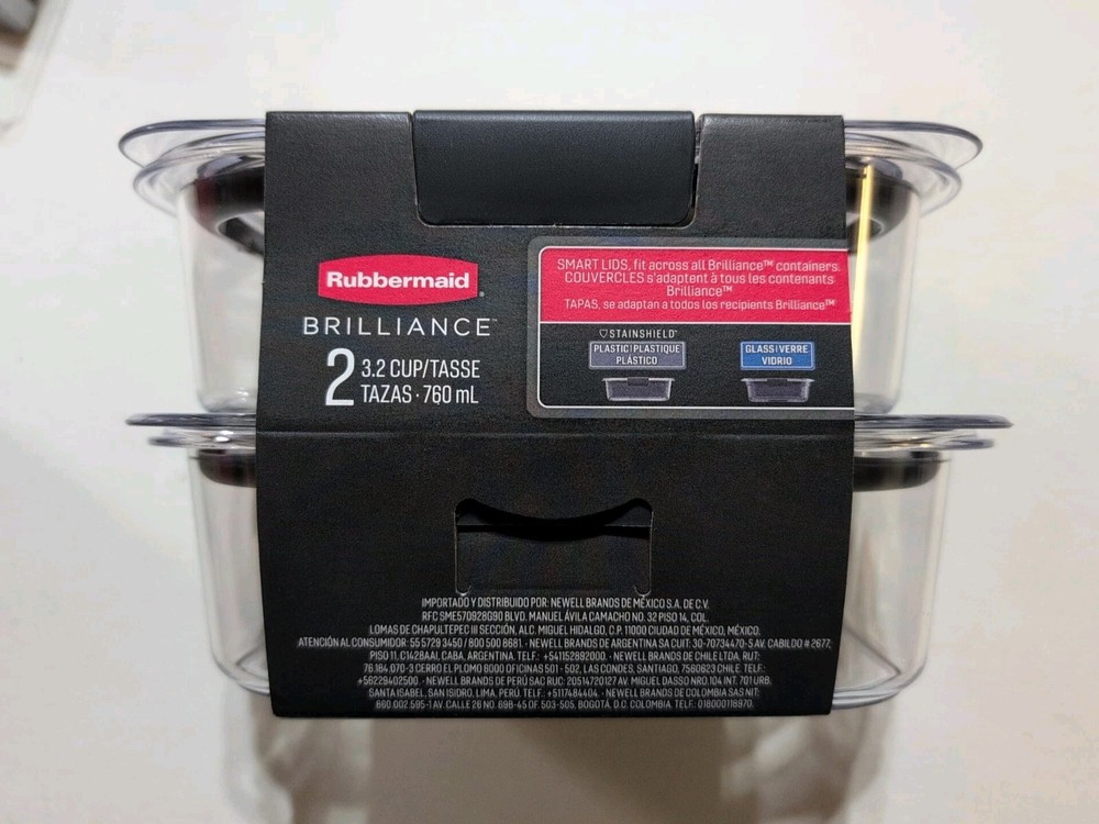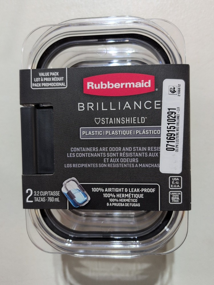 Keep your kitchen organized and your food fresh with the Rubbermaid 3.2 Cup Brilliance Stainshield Food Storage Container Set. Designed with a modern rectangle shape, these containers are made from BPA-free plastic and feature a clear, stain-resistant Brilliance finish that makes it easy to see what's inside. Each container has a 3.2 cup (760 mL) capacity and comes with a snug snap lid that ensures 100% airtight and leak-proof storage. The set includes two containers and two lids, making it perfect for storing a variety of foods, from leftovers to meal prep. The smart lid design allows for easy access and storage in your fridge or pantry. Whether you're looking to declutter your kitchen or keep your food safe, this Rubbermaid storage container set is a practical addition to your home.