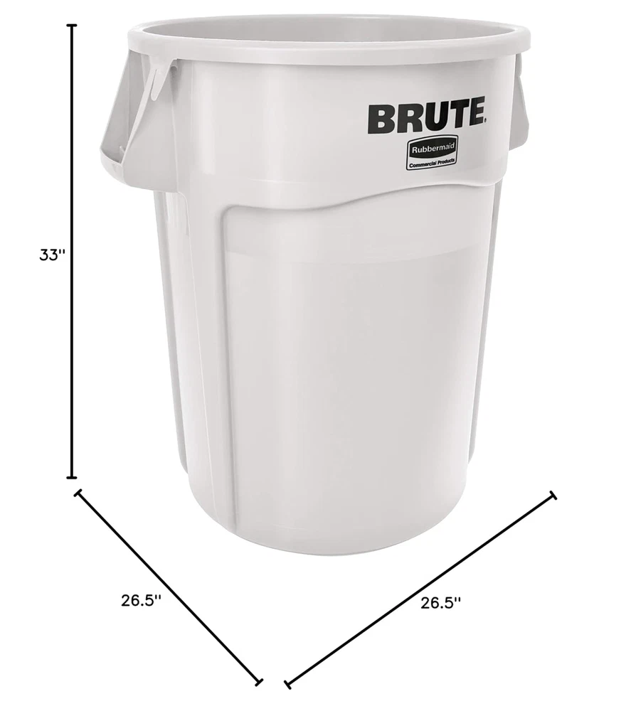 Store New Arrivals Add to Favorite View Feedback Contact Rubbermaid Commercial Products BRUTE Heavy-Duty round Trash/Garbage Can, 55-Gallon, White, Wastebasket for Home/Garage/Mall/Office/Stadium/Bathroom Description Item model number FG265500WHT Manufacturer Rubbermaid Commercial Products Room Type Warehouse" or "Store Room Capacity 55 Gallons Color White Special Feature Open Top Product Dimensions 26 x 26 x 33.5 inches; 11.9 Pounds Material Low-Density Polyethylene Country of Origin China Style Pack of 1 Shape Round Pattern Name Can Opening Mechanism Open-Top Recommended Uses For Product Commercial Is Discontinued By Manufacturer No Finish Type Powder Coated Brand Rubbermaid Size 55 Gallon 55 gallon (208.2 L) capacity - Lid not included Diameter: 26 1/2 in (67.3 cm) Height: 33 in (83.8 cm) Constructed with the highest quality material plus a UV inhibitor ensures long life in even the most extreme environments. Guaranteed to never fade, warp, crack, or crush. Integrated, patent-pending venting channels dramatically reduce the force required to remove a filled can liner by over 50% compared to traditional containers. Integrated cinches secure the liner, allowing for efficient knot free liner changes. Tested to 20, 000 cycles. Rounded handles make lifting and moving easier, and are reinforced to resist tearing or damage from even the heaviest loads. Heavy-duty, reinforced base holds up even when the garbage can is dragged over rough surfaces, extending life and overall durability even in the toughest environments. Contoured base handles improve grip and ergonomics, reducing strain and improving efficiency when emptying containers. Stackable design enables nesting for easy transport and storage. The Rubbermaid Commercial vented BRUTE® container has innovative venting channels make lifting out liners up to 50% easier, improving productivity and reducing the risk of injury. The proprietary design constructed with the highest quality material plus a UV inhibitor ensures long life in even the most extreme commercial environments. Guaranteed to never fade, warp, crack, or crush. ABOUT US We offer the best prices around on high quality products. Our E-store includes media such as books, movies, music and games while offering electronics, toys, sporting apparel, clothing, tools, general home, garden items and more. SHIPPING We are always working hard to ensure your package arrives as soon as possible. Please understand that some factors like weather, high postal traffic, and the performance of shipping companies are outside of our control. For shipping outside of the continental USA, we only use eBay's Global Shipping Program.The item is shipped to KY and then sent to the rest of the world. International customers are responsible for all duties and taxes. Continue to check out in order to calculate costs for shipping the item to your country. Messages regarding eBay's Global Shipping Program MUST be directed at eBay EXCLUSIVELY. RETURNS We offer a 30-Day Return Policy on items which you are not completely satisfied with. You have the option for a full-refund or an exchange of the item. No returns are available on items shipped outside of the USA. PAYMENT We accept PayPal. CONTACT US This page content is yet to come Please ad us to your favorite seller and visit again later Thank You CUSTOMER SATISFACTION We try our very best to make sure every customer is completely satisfied. If there's a problem, message us! We're happy to help. WE ACCEPT Copyright © 2021 AutoDS. | All Rights Reserved