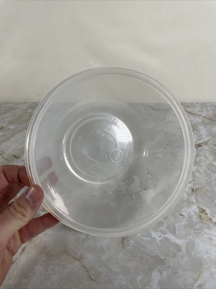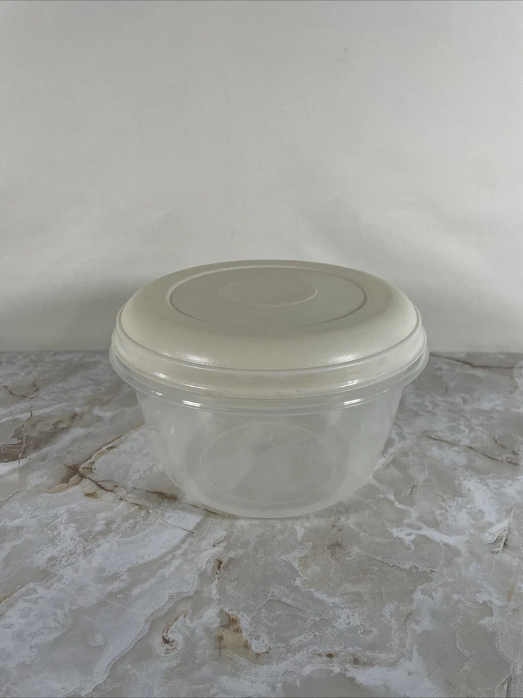 Capacity:2.3 qtItem Height:5"gtin13:Does not applyFeatures:With LidItem Width:8"Shape:RoundSet Includes:LidType:Storage ContainerLid Type:Snap LidBrand:RubbermaidColor:almond lid clear containerNumber of Items in Set:1UPC:Does not applyItem Length:8"Material:Plastic