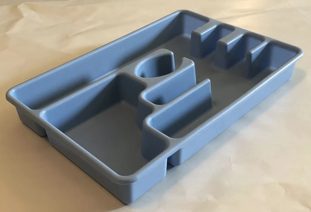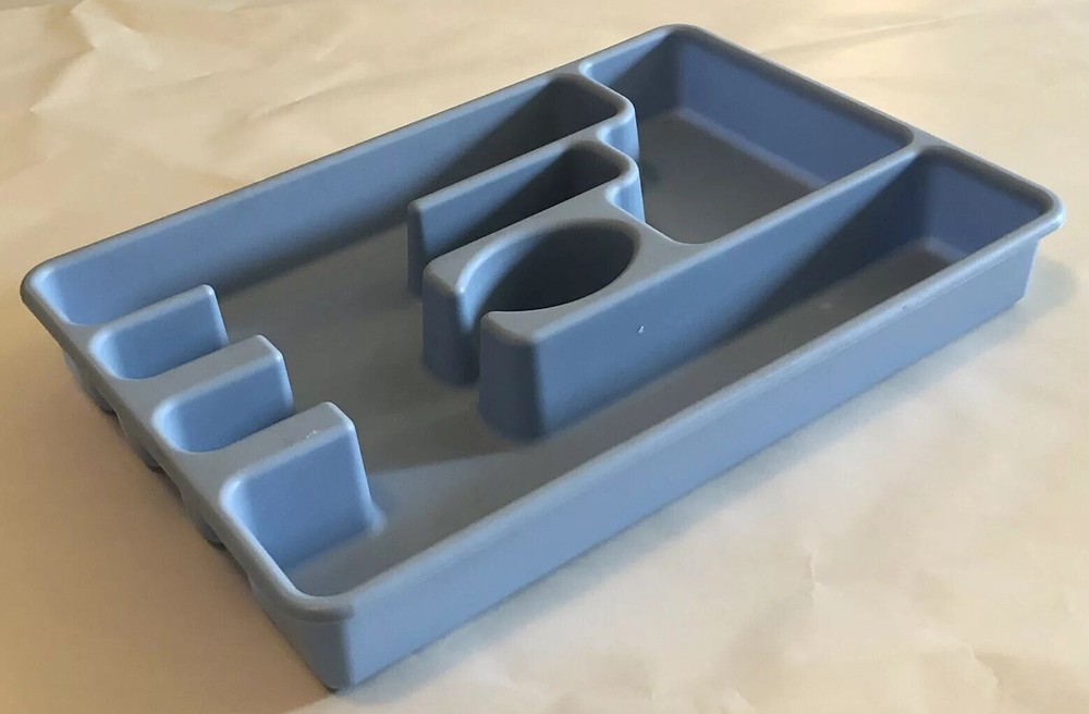 Vintage Rubbermaid Flatware Organizer. Measures approx. 13 1/4" x 9" and is 1 3/4" tall. Model #2921 Blue Please see pictures for details as this is part of my description.