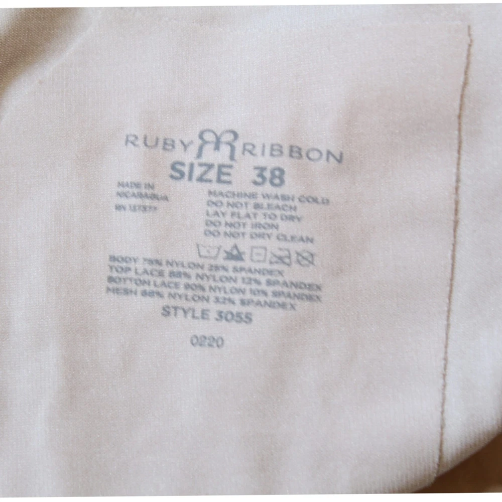 Features: Adjustable Strap Theme: Rose Material: Nylon, Spandex Size Type: Regular Fabric Type: Lace Brand: Ruby ribbon Style: Shaping Top Country/Region of Manufacture: Nicaragua Seller Notes: “Excellent pre owned condition” Compression Area: Abdomen Band Size: 38 Number in Pack: 1 Pack Personalize: No Size: 38 Accents: Logo, Strap Garment Care: Machine Washable Color: Beige Type: Shapewear Department: Women Vintage: No Pattern: Solid