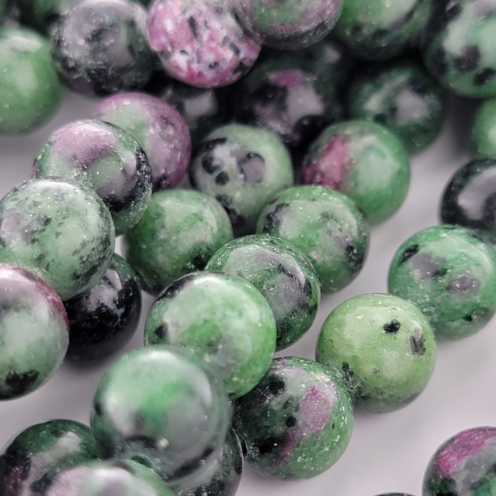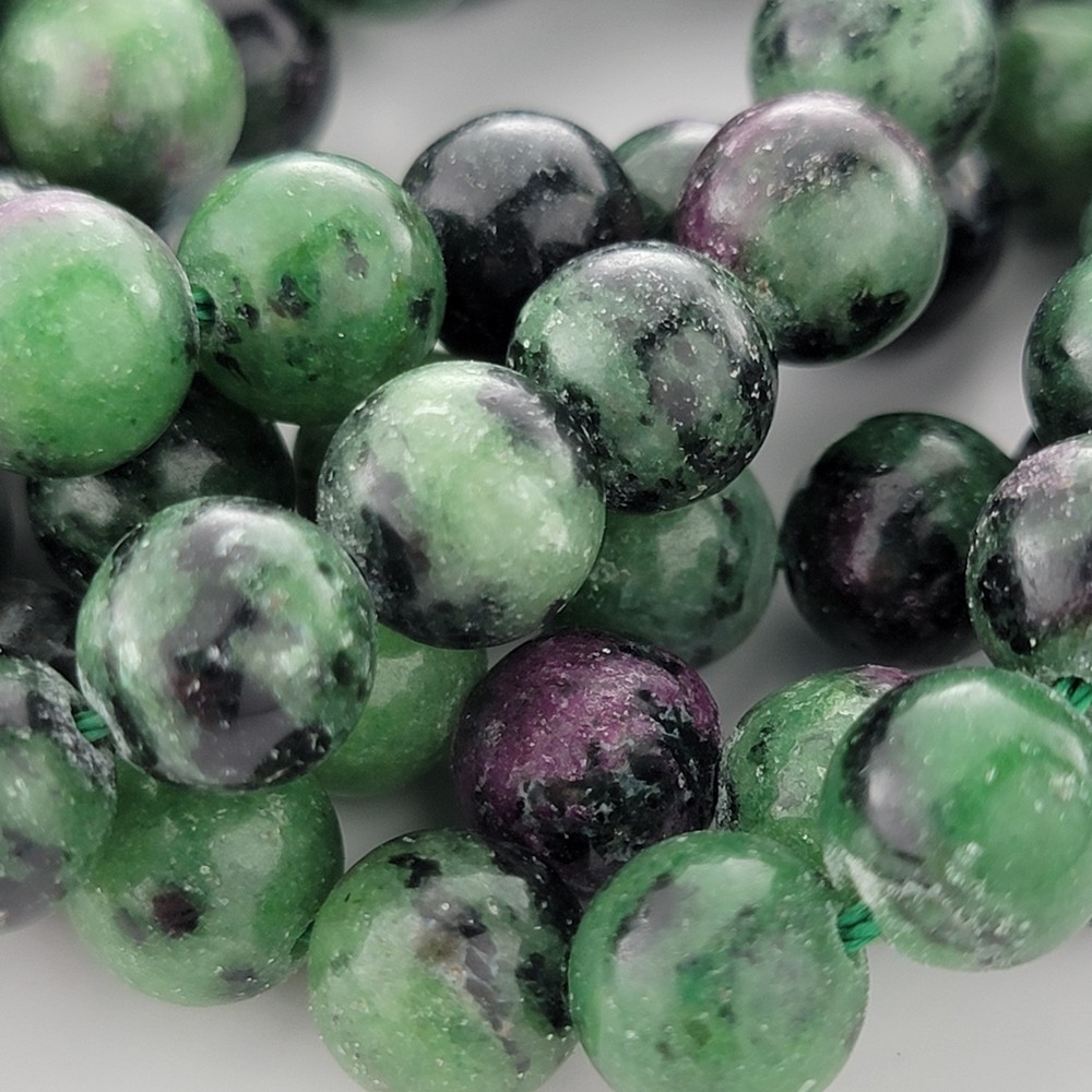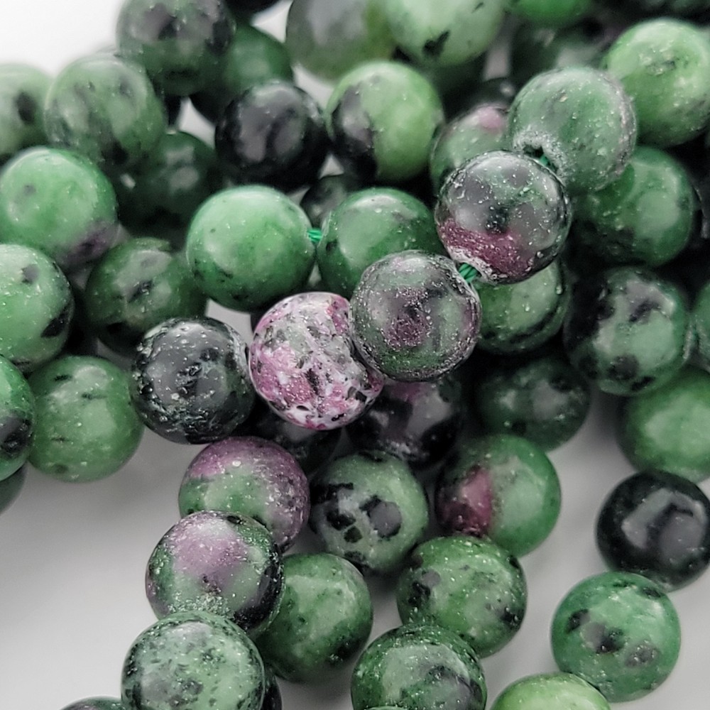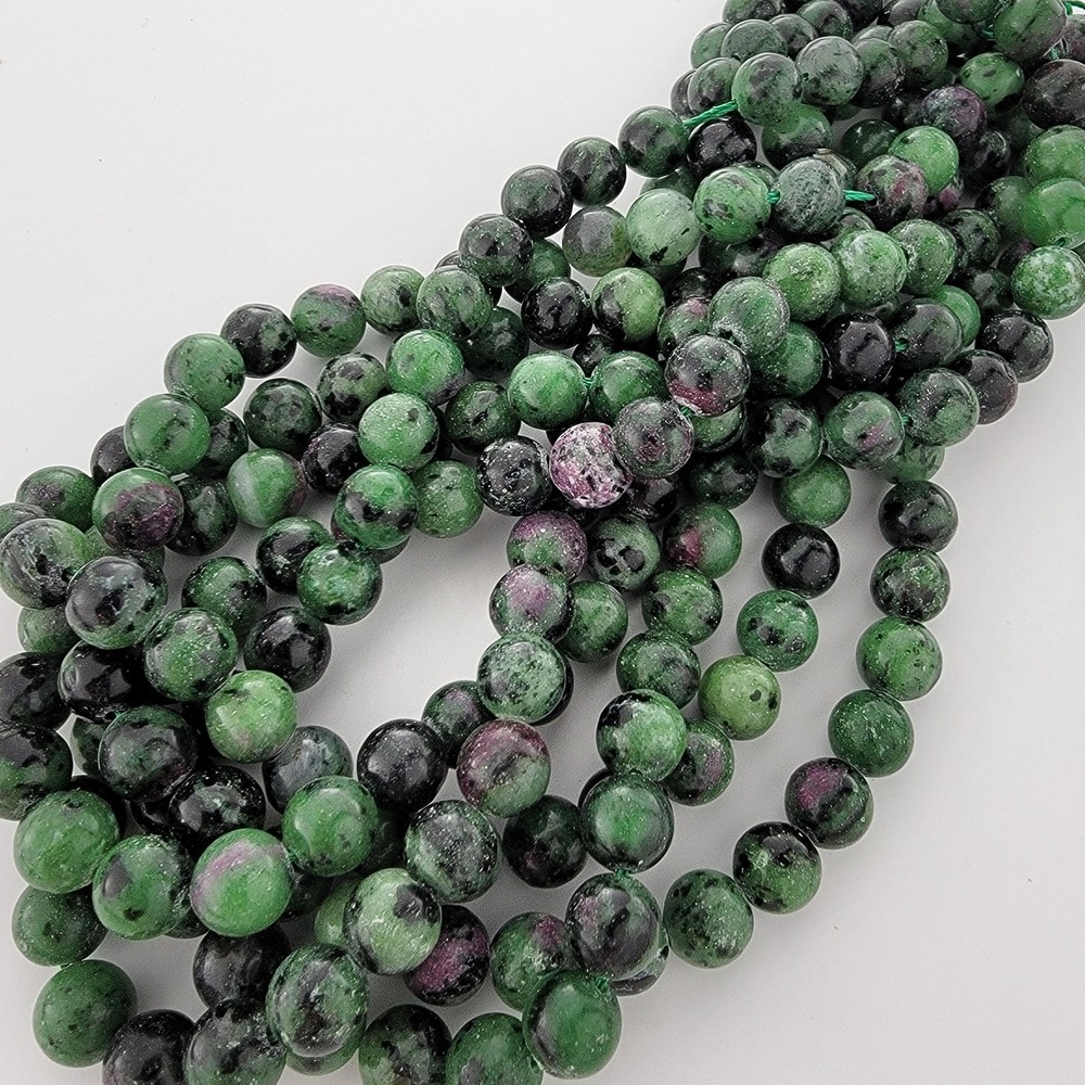 Ruby in Zoisite natural stone beads, 6mm/8mm/10mm. MOHS hardness: 6.5 - 7 Stone of Gratitude. A combination of green zoisite and red corundum. Some say it offers happiness, appreciation, abundance, vitality and growth. Said to have a number of healing properties, including boosting creativity and enhancing spiritual growth. My goal is to consistently provide the best beads available. You'll always receive excellent quality beads from me and I will never lie to you about their grade. Our photos are taken in-house so you'll always see what you're getting. Details: - Strand length: approximately 15" - Price is per strand. - Bead sizes are approximate and may have a variation of +/- 0.5mm. - Drill hole sizes on MOST beads - 4mm beads: about 0.5mm; 6-8mm beads: about 0.7-0.8mm; 10-12mm beads: about 0.8-1.0mm - Drill hole sizes are approximate and may have a variation of +/- 0.2mm. - All natural gemstones vary in color and pattern. We take our photos in-house so you can see the actual product we carry, but there is some variance between batches. - We generally ship Mon-Fri (except holidays) and try to ship same-day when your order is received before 2pm CST. *Number of beads per 15" strand* Our beads are sold by the strand, not the number of beads. Please use the following chart for reference only for smooth, round beads. 4mm dia - about 90pcs/strand 6mm dia - about 60pcs/strand 8mm dia - about 46pcs/strand 10mm dia - about 39pcs/strand 12mm dia - about 33pcs/strand Return Policy Satisfaction guaranteed with our 14-day return policy. Buyer is responsible for all shipping costs. Returned product must be in salable condition and all beads must be on the original strand.