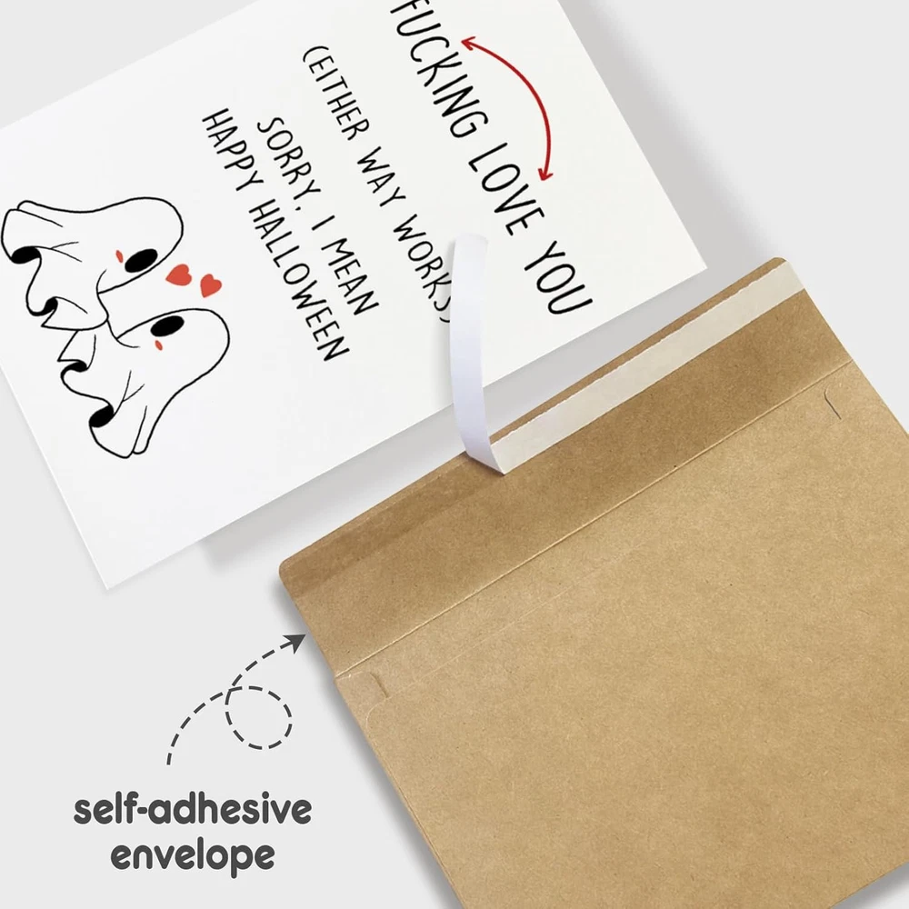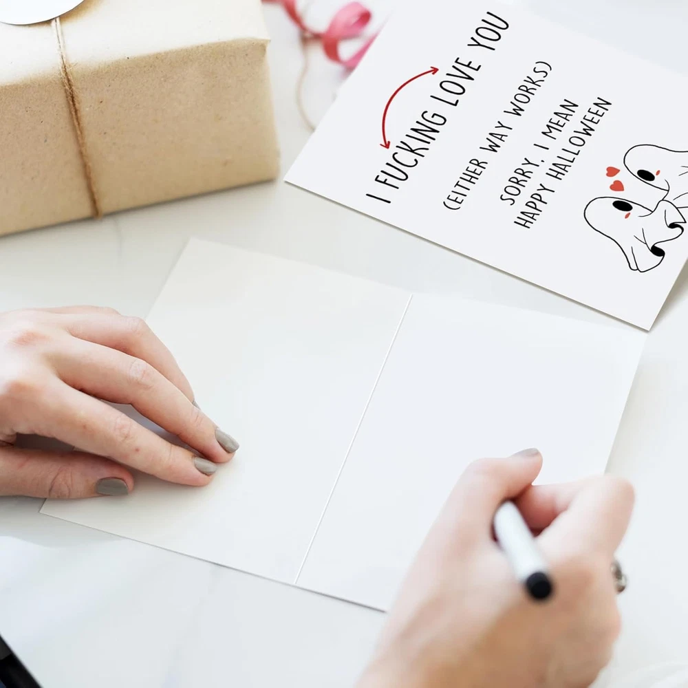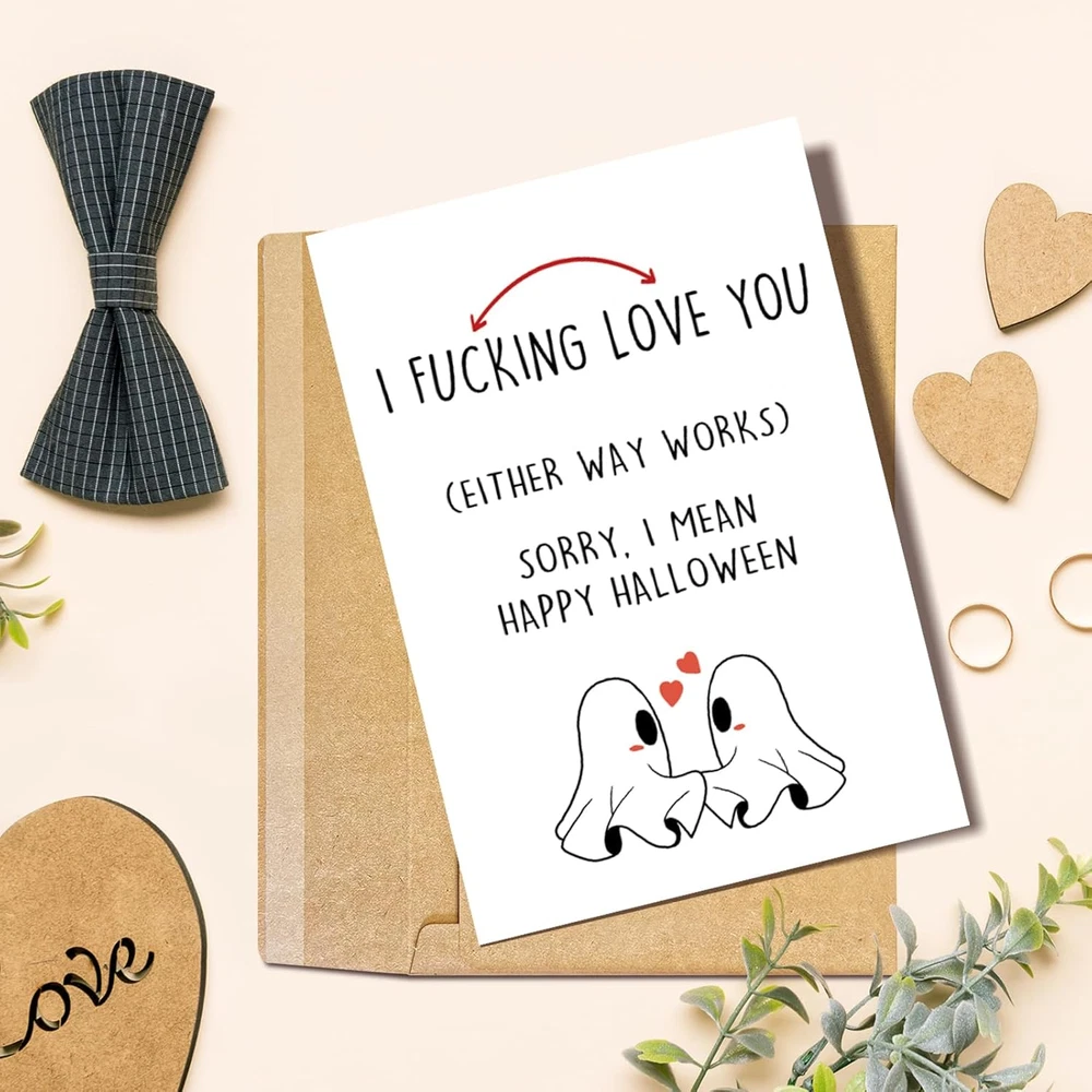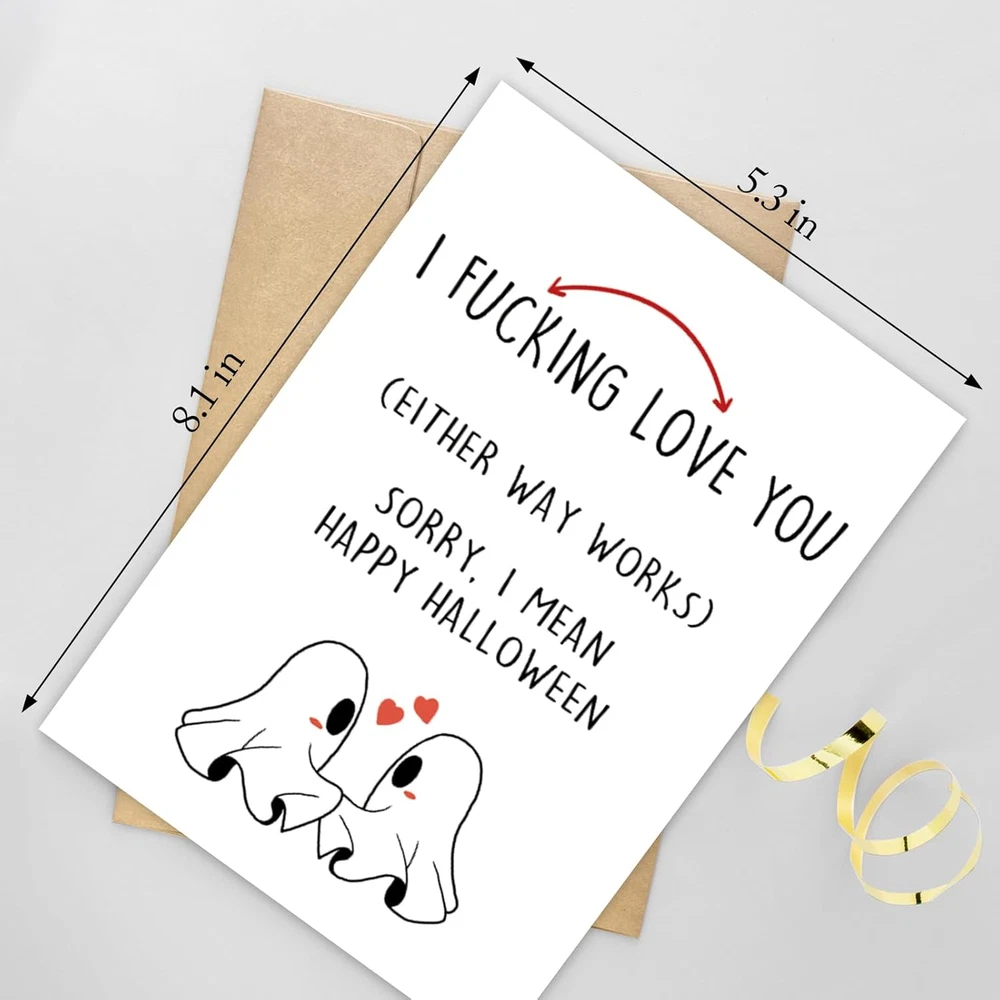 Store New Arrivals Add to Favorite View Feedback Contact Rude Halloween Card for Women Men, Naughty Halloween Card for Husband Wife, Funny Ghost Halloween Card for Boyfriend Girlfriend, I Fucking Love You Description Number of Items 1 Color 055 Manufacturer Part Number NXWH-055-ZZS Item Weight 0.95 ounces Package Dimensions 8.43 x 6.23 x 0.16 inches Express your love to your lover with this cute and rude Halloween themed card. it will be a great surprise for your couple at this Halloween. Greatly for girlfriend, husband, wife, women, men, boyfriend, lover and so on. Cute and spooky Designs with ghost, which can add more sweet and festival vibes for Halloween. And Send love and wish to your partner with this card. The recipient can be joyful and delightful. The card is made of the highest quality 300gsm cards, which will not fade or bend, remaining an unforgettable memories for a long time. And it is perfect for write down your personal words and heartfelt wish inside. Folded card size is 8.0" x 5.5". Coming with a exquisite envelope that can be used for mailing or gifting. Thank you for taking the time to read this listing. Hope this card can bring you a smile of joy. Product Description Spooky And Cute Halloween Gift! Funny Halloween Card For Him Her With a pretty design and funny sentiment, this spooky Halloween card is the perfect way to express your love and wish. The scary Halloween card, Halloween card is perfect to celebrate a spooky Halloween, or an October birthday, send this ghosts card to your sibling, partner, friends or family, wish he or she have a hauntingly Halloween day. With durable and nice quality of this card, you can be free to write and draw what you want and express for recipient. Spooky Halloween Card Options! Spooky And Creative Design Featuring with some Halloween-themed patterns, including wizard, magic stick, curse, creepy forest. Send wish and inspiration to your friends with this positive and novelty Halloween greeting card, and it's sure to surprise and inspire someone significant. Plenty of Blank Inside The inside pages have enough blank to write and draw as you wish, so you can express any of your wishes and hopes. Greatly for children, family, friends, co-workers, students, classmates, neighbors, trick-or-treat, men, women, girls, boys and more. Size And High Quality Card Size (Folded): 8" x 5.3" inches. And comes with a exquisite envelope. Make it more convenient and suitable to send and mail. Printed on high quality and durable paper stoke. This paper is durable enough to be stored for a long time without smudge. Policy on Product Sourcing and Fulfillment Dear Valued Customers, We would like to clarify an important aspect of our business operations to ensure transparency and trust in our relationship with you. Product Fulfillment: Fulfillment by Amazon (FBA): The products are stored in Amazon Fulfillment Centers. This storage solution ensures that the inventory is kept in a secure and climate-controlled environment, which helps maintain the quality and safety of the products. Efficient Delivery: Utilizing Amazon's fulfillment services allows us to leverage their robust logistics network to provide you with fast and reliable shipping. This means you receive your purchases in a timely manner with the added assurance of Amazon's trusted delivery systems. Customer Assurance: Quality Control: Every product is carefully selected and undergoes rigorous quality checks before being listed for sale. Our commitment is to provide you with high-quality items that meet your expectations. Secure Storage: Amazon's Fulfillment Centers are renowned for their high standards of security and efficiency. Your products are stored safely until they are shipped to you. Customer Support: Should you have any questions or concerns regarding your purchase, our customer support team is readily available to assist you. We are dedicated to ensuring your satisfaction with every transaction. We appreciate your business and are committed to providing you with a seamless and satisfactory shopping experience. Thank you for your trust and understanding. Sincerely, -Manager- Shipping Policy and Expectations Dear Valued Customers, We are committed to ensuring that your package arrives as quickly as possible. However, we kindly ask for your understanding regarding certain factors that may occasionally affect shipping times. Our Commitment: Prompt Processing: We strive to process and dispatch your orders promptly to minimize any delays. Reliable Shipping Partners: We work with reputable shipping companies to ensure your packages are handled with care and delivered efficiently. External Factors: While we do everything within our power to expedite your order, please note that some factors are beyond our control: Weather Conditions: Severe weather can impact shipping routes and cause delays. High Postal Traffic: During peak seasons, such as holidays, the increased volume of packages can lead to longer delivery times. Shipping Company Performance: The performance and schedules of shipping companies may vary, potentially affecting delivery times. We appreciate your patience and understanding in these situations. Rest assured, we are doing everything possible to get your package to you as soon as possible. Customer Support: If you have any questions or concerns about your order, please do not hesitate to contact us. Our customer support team is here to assist you and provide any necessary updates on your shipment. Thank you for your trust and continued business. Shipping Policy and Customer Satisfaction Shipping Information: Service Area: We offer shipping to the lower 47 states. Please confirm with us about the delivery date before completing your purchase. Thank you. Address Requirements: We do not accept P.O. Boxes. Please provide a physical address for delivery. Shipping Restrictions: Unfortunately, we are unable to ship items to the state of Ohio and California due to shipping agreements and r