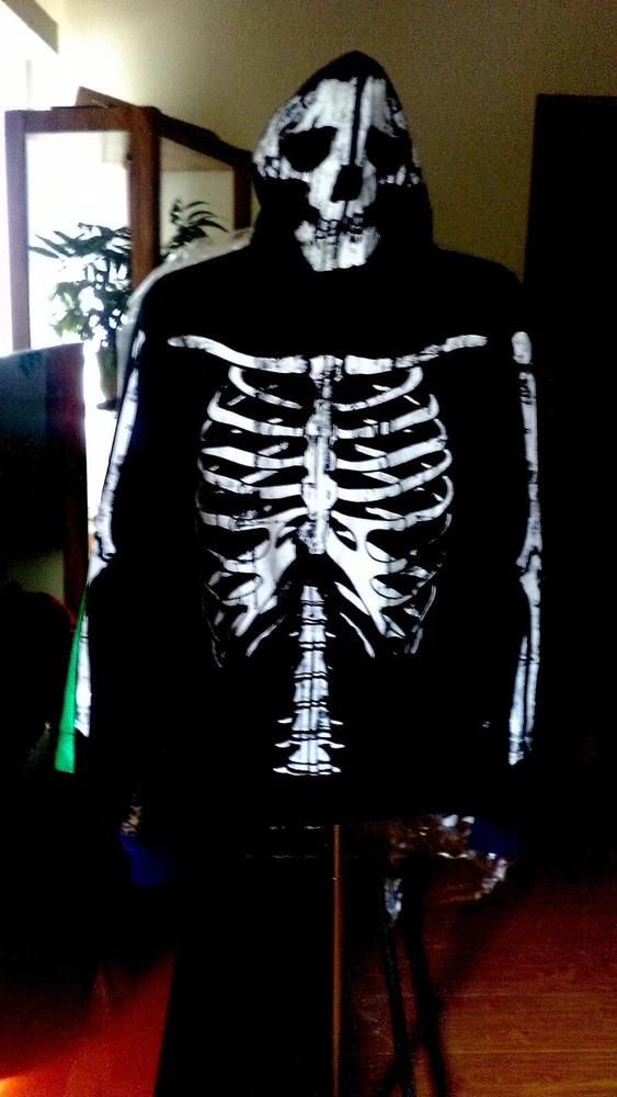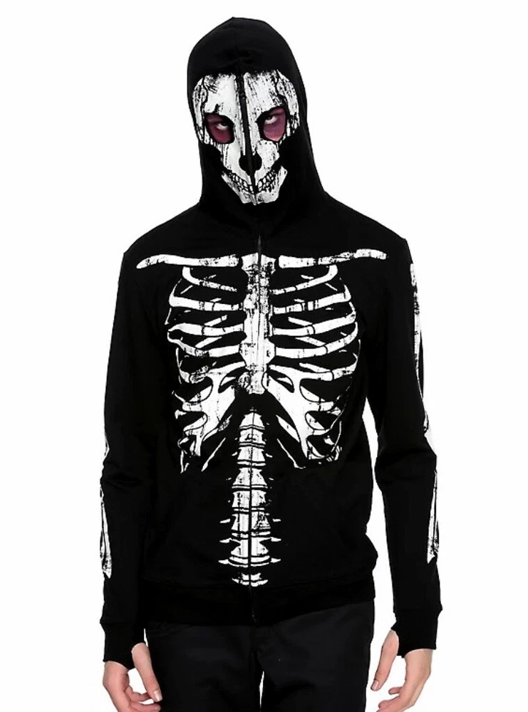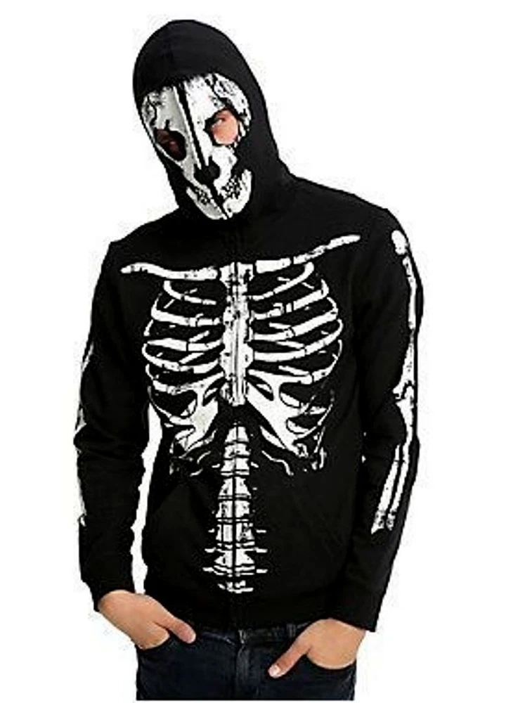 This Rude Skeleton Hoodie with Zip Up Mask is the perfect addition to any edgy wardrobe. The full zip closure and cotton blend material make it comfortable and practical for everyday wear. The hoodie features a black color and the skeleton character design adds a unique touch. The size of the hoodie is small with a regular fit and is suitable for men.