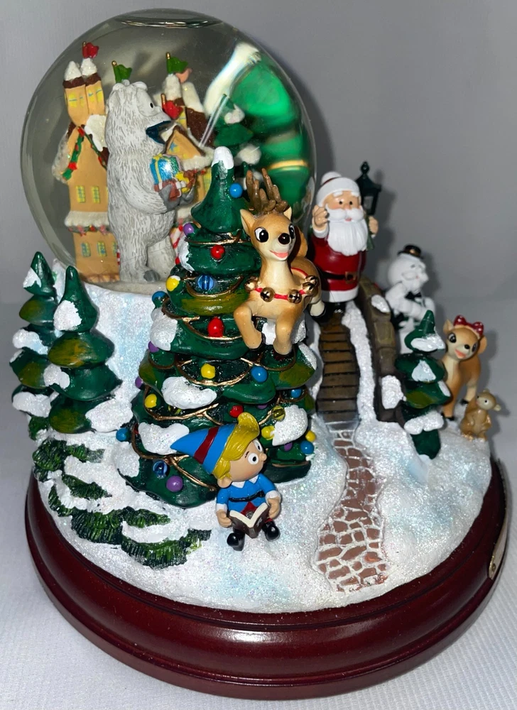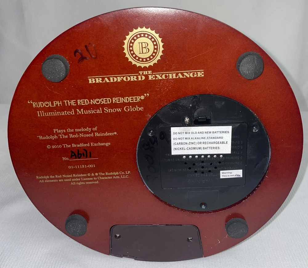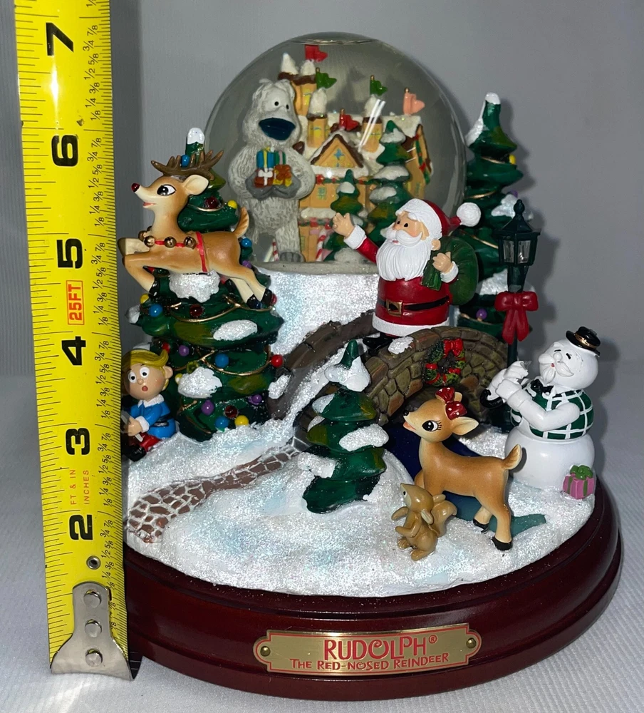 Rudolph The Red Nose Reindeer Lighted Musical Glitter Globe Pre-owned, No adapter. Looks like snowman on the outside of globe has damage, not sure. Music, light works great. No box or COA. Requires 3 AA batteries not included. All water is clear. Has special snow blowing feature. Rudolphs nose lights up, as does the Christmas tree light post. All hand painted. From The Bradford Exchange. 2010. Numbered. Do not overwind. Will be packed with care, double boxed and marked fragile before shipping. THIS CANNOT BE IN A COMBINED SHIPPING DEAL DUE TO SPECIAL PACKING NEEDS. LOOKING FOR LESS EXPENSIVE SHIPPING? Click on "See details" next to Expedited Shipping Fee above to see other shipping options. eBay calculates the shipping fee based on package size, weight and type of shipping you select.
