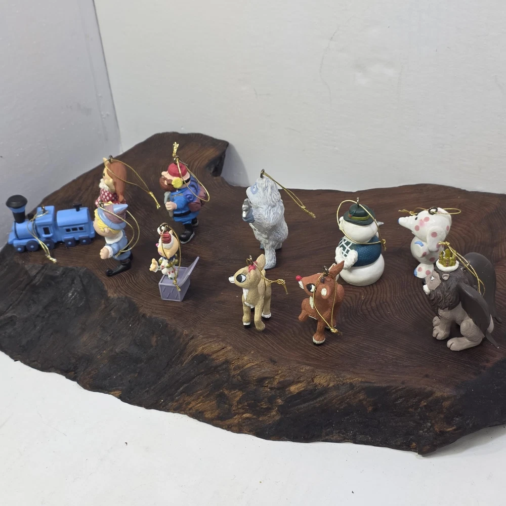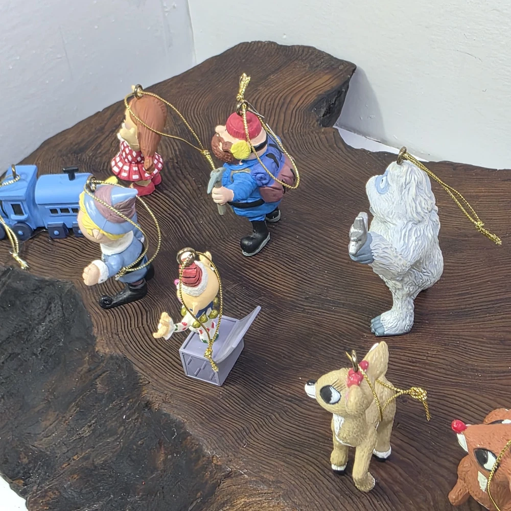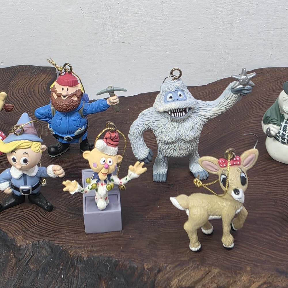 π Item Description This listing is for a lot of officially licensed ornaments from the classic Rudolph the Red-Nosed Reindeer television special by Rankin/Bass. The group includes characters from the Island of Misfit Toys as well as main film favorites, all produced under The Rudolph Company / R&C licensing. These are molded decorative ornaments (not Hallmark Keepsakes). π Characters Included Bumble (Abominable Snowman) Yukon Cornelius Hermey the Elf Rudolph Clarice Sam the Snowman King Moonracer Dolly for Sue Island of Misfit Toys Train (licensed Misfit Toys piece) π Details Official Rankin/Bass / Rudolph Company licensed ornaments Molded resin / composite construction Each piece includes its hanging cord Most marked Β© R&C / The Rudolph Company / Made in China on base π Condition All ornaments are in very good pre-owned condition. No cracks, breaks, or repairs observed Light surface wear and minor paint variations consistent with age and display Hanging loops and cords intact Please review photos closely as they are part of the description π Notes for Collectors These are not Hallmark Keepsake ornaments This is a matched Rankin/Bass Rudolph / Misfit Toys grouping, ideal for display or completing a collection