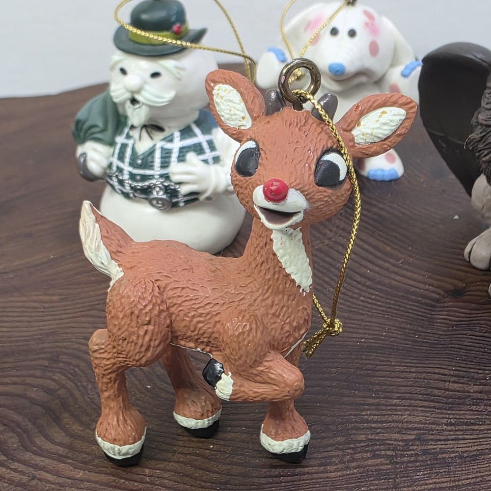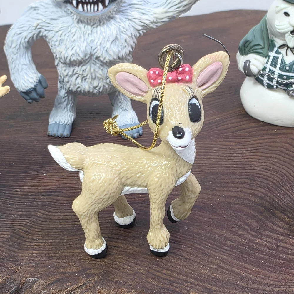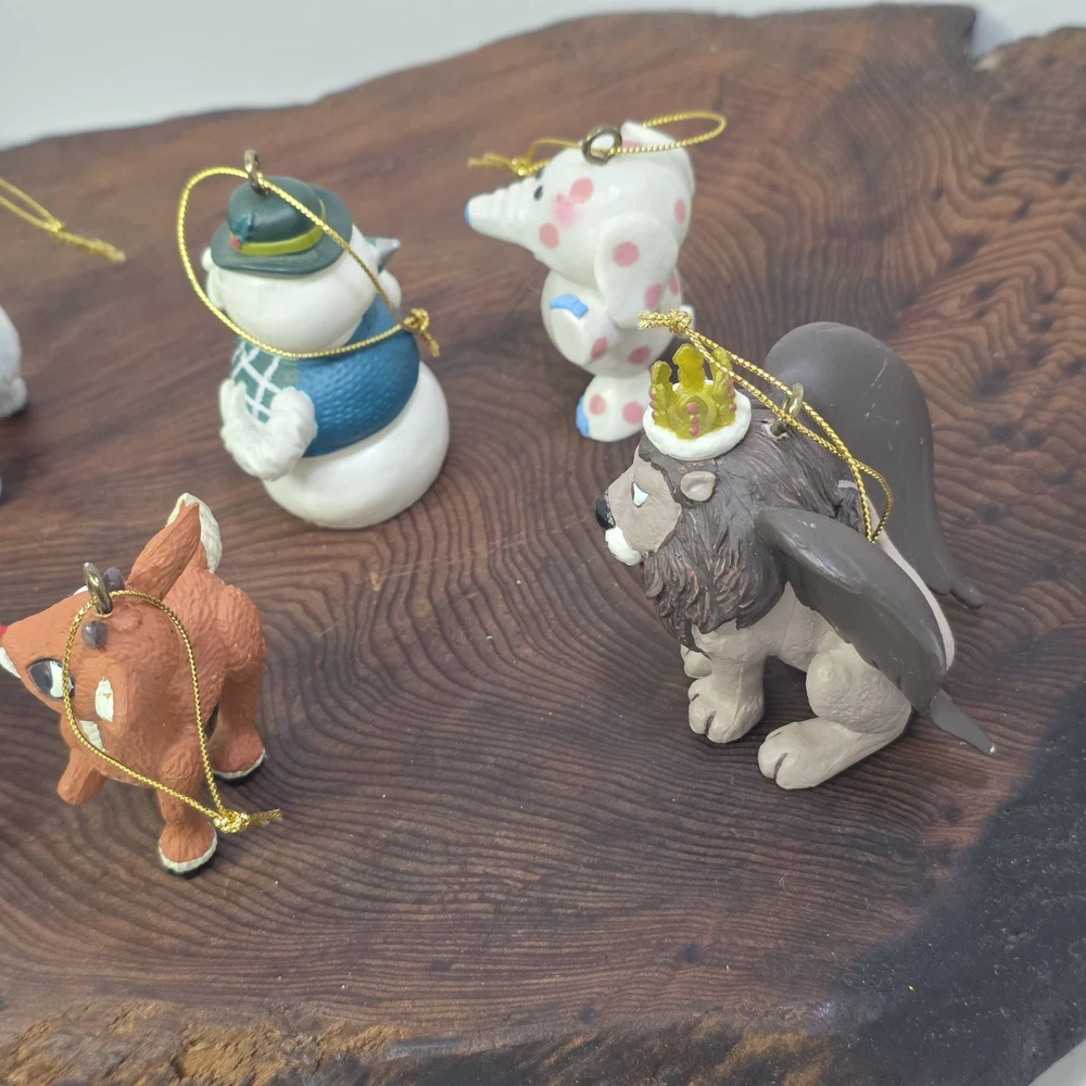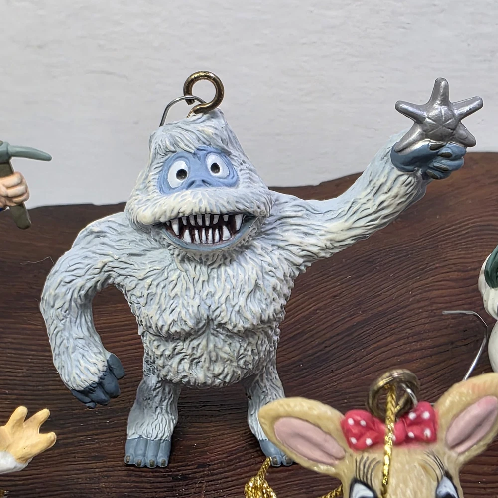 π Item Description This listing is for a lot of officially licensed ornaments from the classic Rudolph the Red-Nosed Reindeer television special by Rankin/Bass. The group includes characters from the Island of Misfit Toys as well as main film favorites, all produced under The Rudolph Company / R&C licensing. These are molded decorative ornaments (not Hallmark Keepsakes). π Characters Included Bumble (Abominable Snowman) Yukon Cornelius Hermey the Elf Rudolph Clarice Sam the Snowman King Moonracer Dolly for Sue Island of Misfit Toys Train (licensed Misfit Toys piece) π Details Official Rankin/Bass / Rudolph Company licensed ornaments Molded resin / composite construction Each piece includes its hanging cord Most marked Β© R&C / The Rudolph Company / Made in China on base π Condition All ornaments are in very good pre-owned condition. No cracks, breaks, or repairs observed Light surface wear and minor paint variations consistent with age and display Hanging loops and cords intact Please review photos closely as they are part of the description π Notes for Collectors These are not Hallmark Keepsake ornaments This is a matched Rankin/Bass Rudolph / Misfit Toys grouping, ideal for display or completing a collection