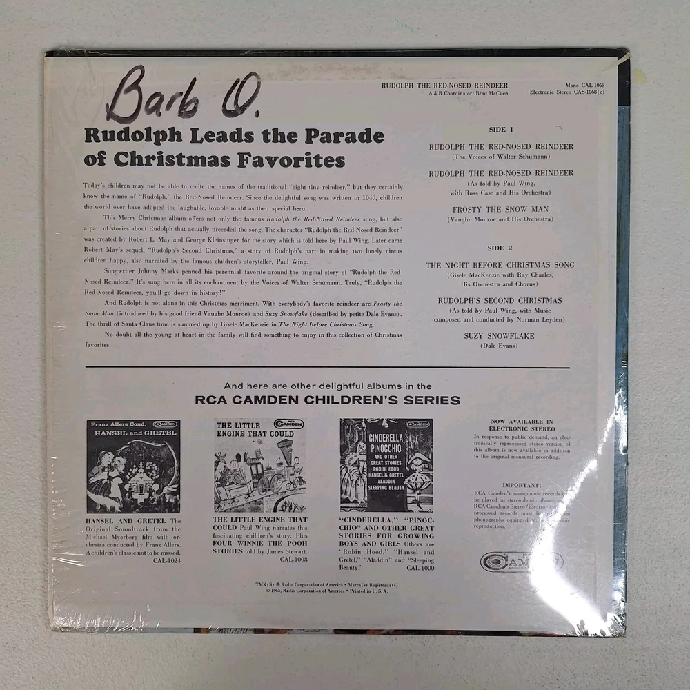 Rudolph The Red Nosed Reindeer Vinyl Lp Camden CAS 14068 Open Shrink 1965