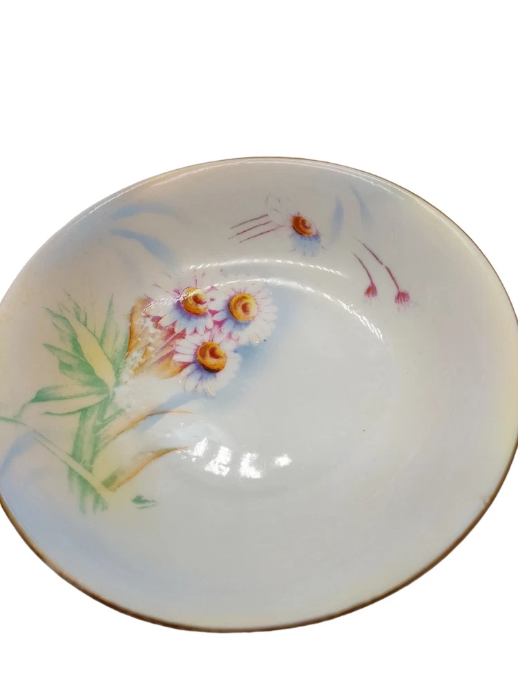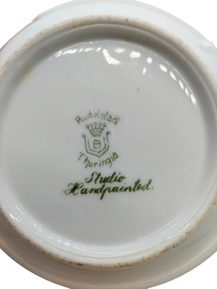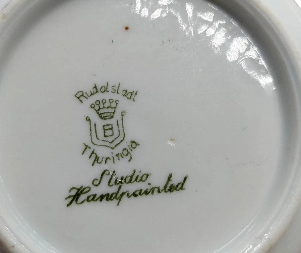 One saucer has small crack on edge. Please see attached photos Rudolstadt Thuringia Hand Painted 5" blue floral set of 4 READ.