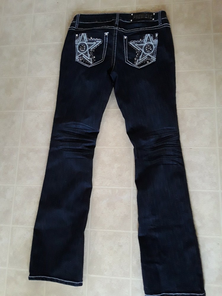 PREMIERE By Rue 21 Studs Rhinestone Regular Slim Boot Blue Jeans Size 7/8 R NWT Waist : 32" Inseam: 33.5" Rise: 8" Leg Opening : 9" Zipper: yes Buttons: 1 : AT Combined Shipment: USA : Highest item shipping cost + $3.00. for each subsequent item.Or, you can purchase as many items as you choose and pay the flat rate of $ for your Priority Mail Large Flat Rate Box which covers your entire order. Please read the disclaimer below. INTERNATIONAL SHIPMENTS: Highest item shipping cost [+ Item Weight.] for each subsequent item. Please read the disclaimer below. DISCLAIMER on Shipping Costs: Our intention is to keep our shipping costs as low as possible. However, depending on the item purchased (weight) and the destination, shipping rates can vary; especially 30 Day?s No Questions Asked Returns Policy: Your satisfaction is very important to us. We have a 30 days NO QUESTIONS ASKED returns policy. The item must be returned in the condition in which it was purchased. If there are labels/tags they should not be removed. If they are, the item will be sent back to you. ANY SHIPPING COSTS WILL NOT BE REFUNDED. BOTH WAYS, receiving and any returns. Please contact us for the return shipping address and authorization. ALL COMMUNICATIONS MUST BE IN WRITING & TAKE PLACE THROUGH THE EBAY SITE ONLY. No private direct email correspondence. A customer care rep. will respond to you within 24 hrs (Mon-Fri). Once we have received the merchandise and inspected it, please allow 72 hours for a refund to be issued. NO See my other listings for more great items! We accept PAYPAL. Also we have a virtual terminal with PayPal through which we can accept Visa, MasterCard, Amex, and Discover. If you do not have a PayPal account, it takes virtually minutes to open International shipments: PLEASE DO NOT PAY until we determine your shipping costs. Most of our items also have an International Flat-Rate. Although, if due to the destination or the weight we are unable to honor the rate mentioned in the item?s listing, we will cancel your order and leave you positive feedback. Usually we use the US Postal Service. The best international rate for an international shipment is First Class (up to 4 lbs.)If your items exceed 4 lbs. we may pack them into two separate packages (and notify you of this).You still are eligible to take advantage of the combined shipping rates, even if we have packed them into two separate packages. The fees for packaging, shipping, insurance, Customs Duty Charges on international shipments are all the responsibility of the Buyer and are not included in the purchase price. If the item(s) are gifts, we could indicate ?GIFT? on the customs form so you would avoid paying more on duty.