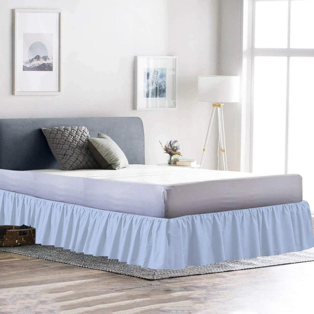Ruffled Bed Skirt with Split Corners Queen LT-Blue 18 Inch Drop 100%Cotton 600TC