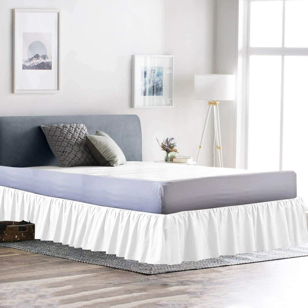 Ruffled Bed Skirt with Split Corners Queen White 21inch Drop 100% Cotton 600 TC