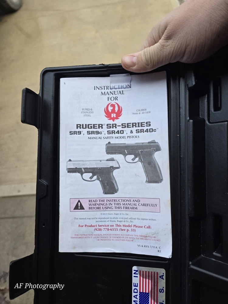 Ruger SR9 Factory Hard Case Box Weapon Storage with manual