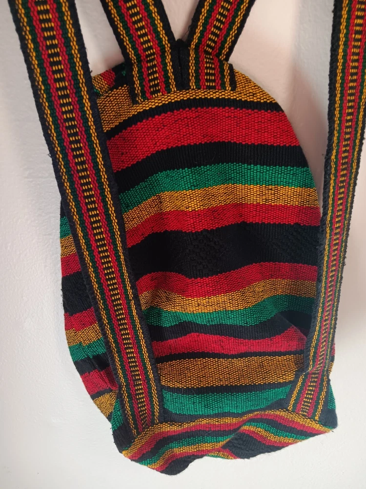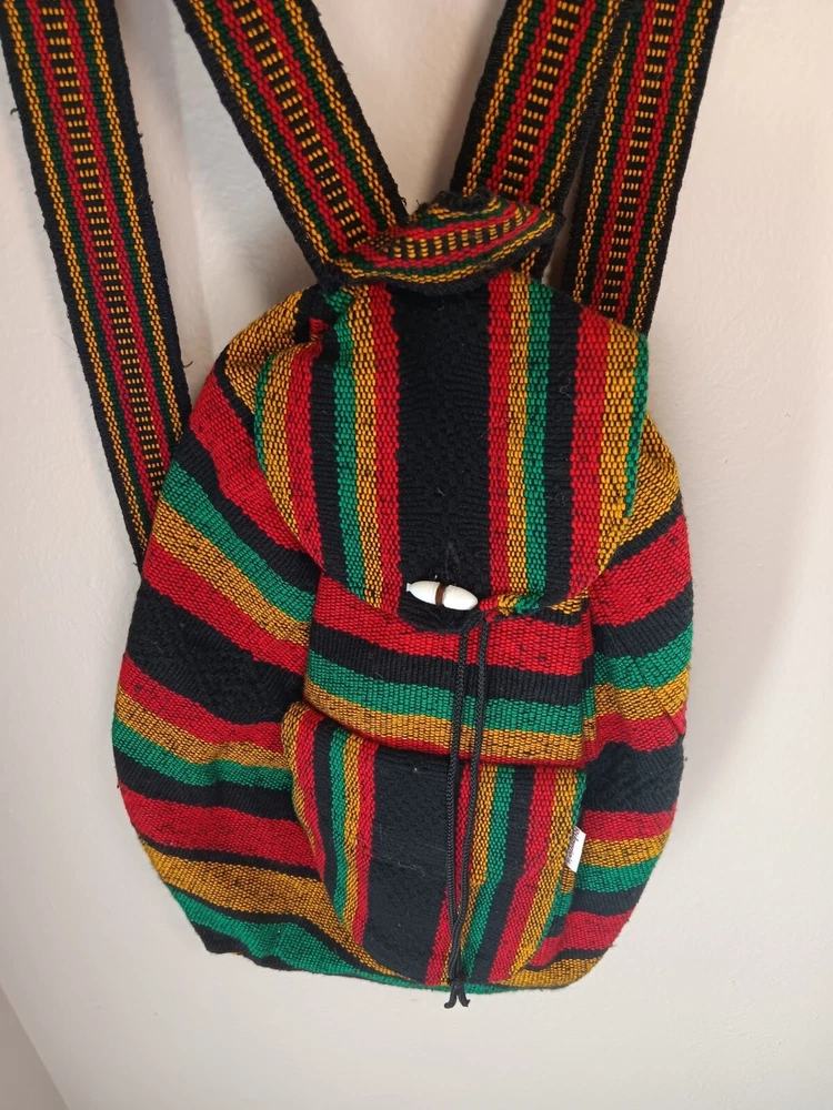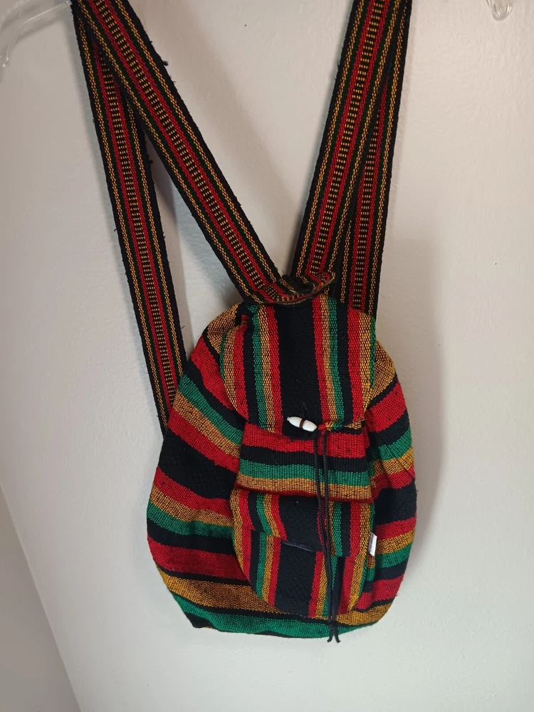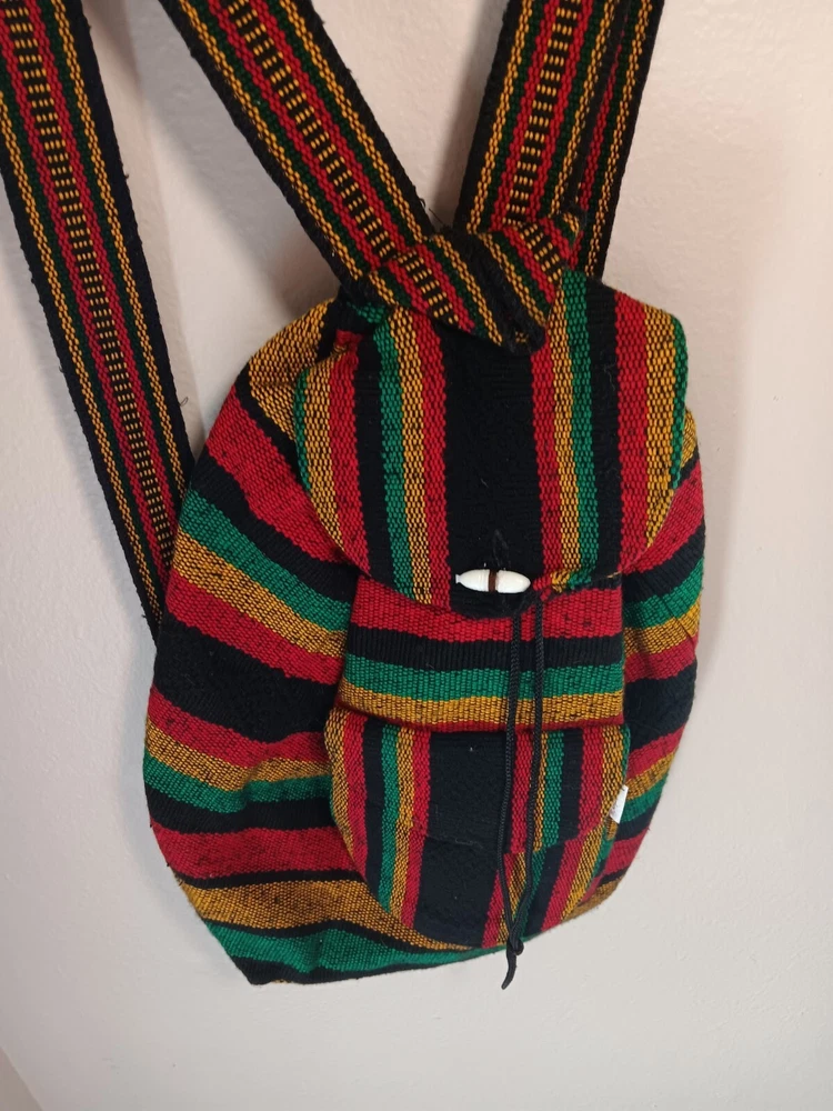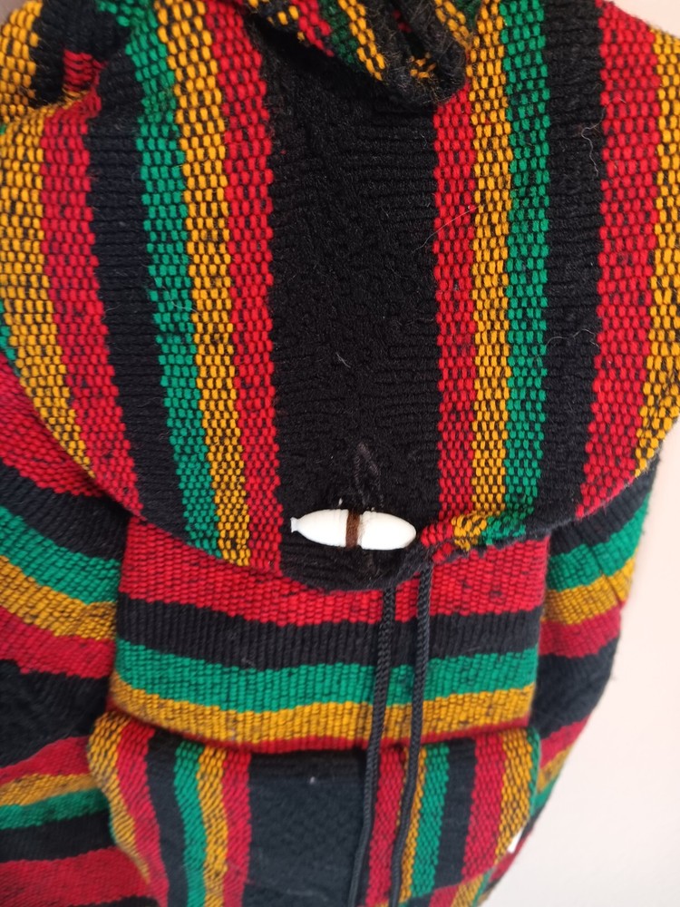 Closure: Drawstring Occasion: Activewear, Casual, Travel Handmade: No Brand: Rugerios Personalize: No Accents: Button, Zipper Country of Origin: Mexico Material: Acriic Model: n/a Color: Multicolor California Prop 65 Warning: n/a Fabric Type: Blended Fabric Department: Unisex Kids Vintage: No UPC: Does not apply Theme: Rasta Character: rasta gtin13: Does not apply Pattern: Striped Character Family: N/A Features: Lightweight, Pockets MPN: n/a Product Line: N/A Size: Medium Style: Backpack