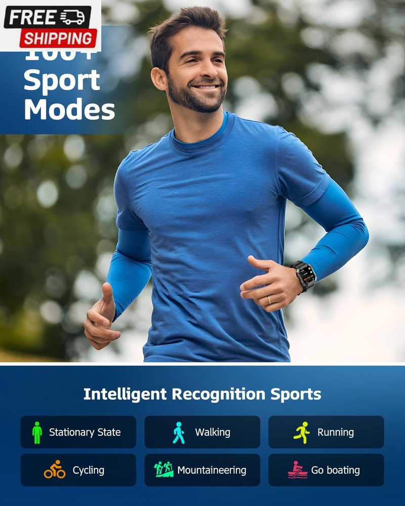 This military smartwatch is a game-changer! The 2.01" HD display is super crisp, and Bluetooth calling works flawlessly. I love the 100+ sport modes—perfect for tracking my workouts. The IP68 waterproofing means I can swim with it worry-free. Heart rate and blood pressure monitoring are accurate, and battery life lasts days. Fast shipping, great customer service, and the 30-day guarantee make this a no-brainer purchase. Highly recommend for anyone wanting a rugged, feature-packed smartwatch!