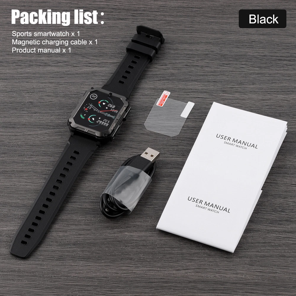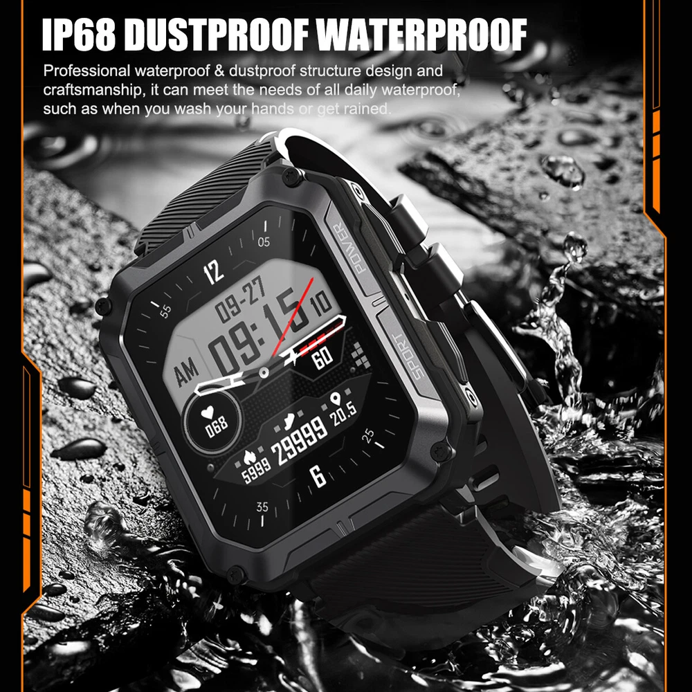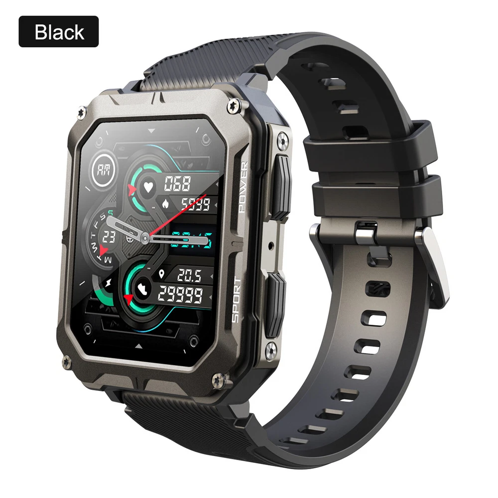 Product Description Features: 1. The main body of the watch is made of zinc alloy metal frame, and the mirror surface is made of Corning glass, which is sturdy and scratch-resistant, with 5ATM water resistance, good protection performance, and can be used for various outdoor sports scenes; 2. Powerful functions, built-in multi-point optical sensors, comprehensively detect health data, including heart rate, sleep time and quality, and can also set sedentary reminders and drink water reminders to help you develop a better life and work Habit; 3. Support a total of 24 sports data detections such as walking, running, cycling, mountaineering, etc., view sports data in real time, and better understand the progress and effect of sports completion; 4. Mobile phone interconnection, real-time viewing of mobile phone APP message notifications and call reminders, and one-key operation to reject. Message notification supports mainstream APPs such as SMS, facebook/twitter/whatsapp/wechat; 5. The watch comes with 12 wallpapers with various styles, and you can also download 150+ fresh wallpaper patterns from the Internet, so that the watch interface is completely new and not the same; 6. With various functions for daily use, such as alarm clock setting, stopwatch, countdown, breathing exercise; 7. The watch has a built-in 380 mAh battery, which can last up to two weeks with light use when fully charged, without the hassle of daily charging. Parameters: C20 PRO C20 Plus Material: alloy case, silicone strap Material: alloy case, silicone strap Screen: 1.83 inches 286 x 240 resolution HD square screen Screen: 1.81-inch 240x 286 resolution HD square screen Connection: Bluetooth 5.0 Connection: Bluetooth 5.3 APP name: Dafit APP name: Dafit Supported languages: English, French, Japanese, German, Spanish, Russian and other 35 languages Supported languages: English, French, Japanese, German, Spanish, Russian and other 35 languages Supported devices: Android 6.0 iOS9.0 and above Supported devices: Android 6.0 iOS9.0 and above Battery: Capacity 380mAH Battery: Capacity 140mAH Charging cable length: 60cm Charging cable length: 60cm Case size: 54mm x 43mm x 12.9mm Case size: 55mm x 44.5mm x 13.5mm Watch total length: 265mm Watch total length: 265mm Maximum wear length: 248mm Maximum wear length: 245mm Minimum wear length: 170mm Minimum wear length: 165mm Watchband width: 22mm Watchband width: 20mm Waterproof class: IP68 Waterproof rating: 5ATM Style: Outdoor, Sports, Defense, Tactical, Tough Guy, Muscular Product function: Connect mobile phone APP via Bluetooth, provide health monitoring (heart rate, sleep, sedentary reminder, drinking water reminder, etc.), exercise record (24 exercise record data can be selected), mobile phone message notification, caller ID, weather check (obtain data from mobile phone), alarm clock (three can be set), remote control photography, etc. For more detailed functions, please refer to the product manual. Packing list: Sports smart watch x1 Magnetic charging cable x1 Product manual x1 Payment Shipping Terms Returns Contact Us We accept PayPal only. If buyer want to delay the payment because of financial problem, please contact me by the ebay message within 3 days Payment via PayPal (PayPal accepts all major credits/debit cards and eCheque) ECheque payment will tak e 3-10 days to get clear, thus DELAYing the shipment. Handling time: 1 business day (Orders are not processed on weekends & holidays) Tracking information will be sent once item is shipped. Local pick-up is unavailable at the moment. For international shipping and shipping to Guam, Hawaii and Alaska, Please contact us before placing the order. Item is shipped to ebay address. Leaving correct address can minimize delay. For any issues with Defects, Return, Item Exchange request, please contact us first and send us a message first before opening any type of case or request. We devote ourselves making EVERY CUSTOMER in 100% Satisfactory and resolve any problem. We highly value and appreciate your business. Thank you. No returns will be accepted without an RMA number. Please contact us for the RMA number. Return is acceptable within 30 days of delivery. Return for replacement or money back is optional. Returned items must be in the brand new, unaltered and resalable condition. Seller is not responsible for any labor cost, expense in a dealer store, or damage due to wrong installation. Return is accepted within 14 days after the buyer's receiving the item. (Excluding contrived damagement or misusage).100% money-back Guaranteed! All product will be tested in 100% before delivery.If the item is defected by the processing of postage,Buyer has up to 14 days from date of receipt for exchange of a new one.All shipping charges for returned products are to be paid by the buyer,Please contact us for the return address All messages will be answered within 24 office hours. Please contact us either by clicking "contact seller" in the "purchase history" section or simply click "ask a question" at the bottom of this page. If you are unsatisfied with our item or service, please contact us before leaving any feedback. We are committed to resolve all issues in a friendly and satisfactory manner. We always reply to messages within 2 business days (off-duty at weekend). If you do not get a response from us, then please check your junk or spam mailbox. Payment We accept PayPal only. If buyer want to delay the payment because of financial problem, please contact me by the ebay message within 3 days Payment via PayPal (PayPal accepts all major credits/debit cards and eCheque) ECheque payment will tak e 3-10 days to get clear, thus DELAYing the shipment. Shipping Handling time: 1 business day (Orders are not processed on weekends & holidays) Tracking information will be sent once item is shipped. Local pick-up is unavailable at the moment. For international shipping and shipping to Guam, Hawaii and Alaska, Please contact us before placing the order. Ite