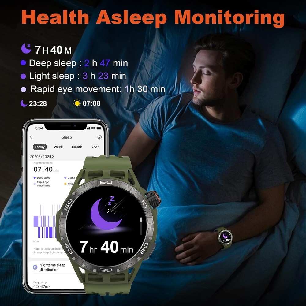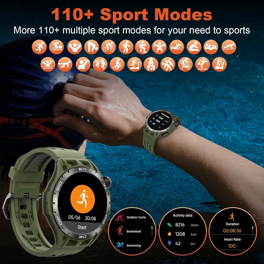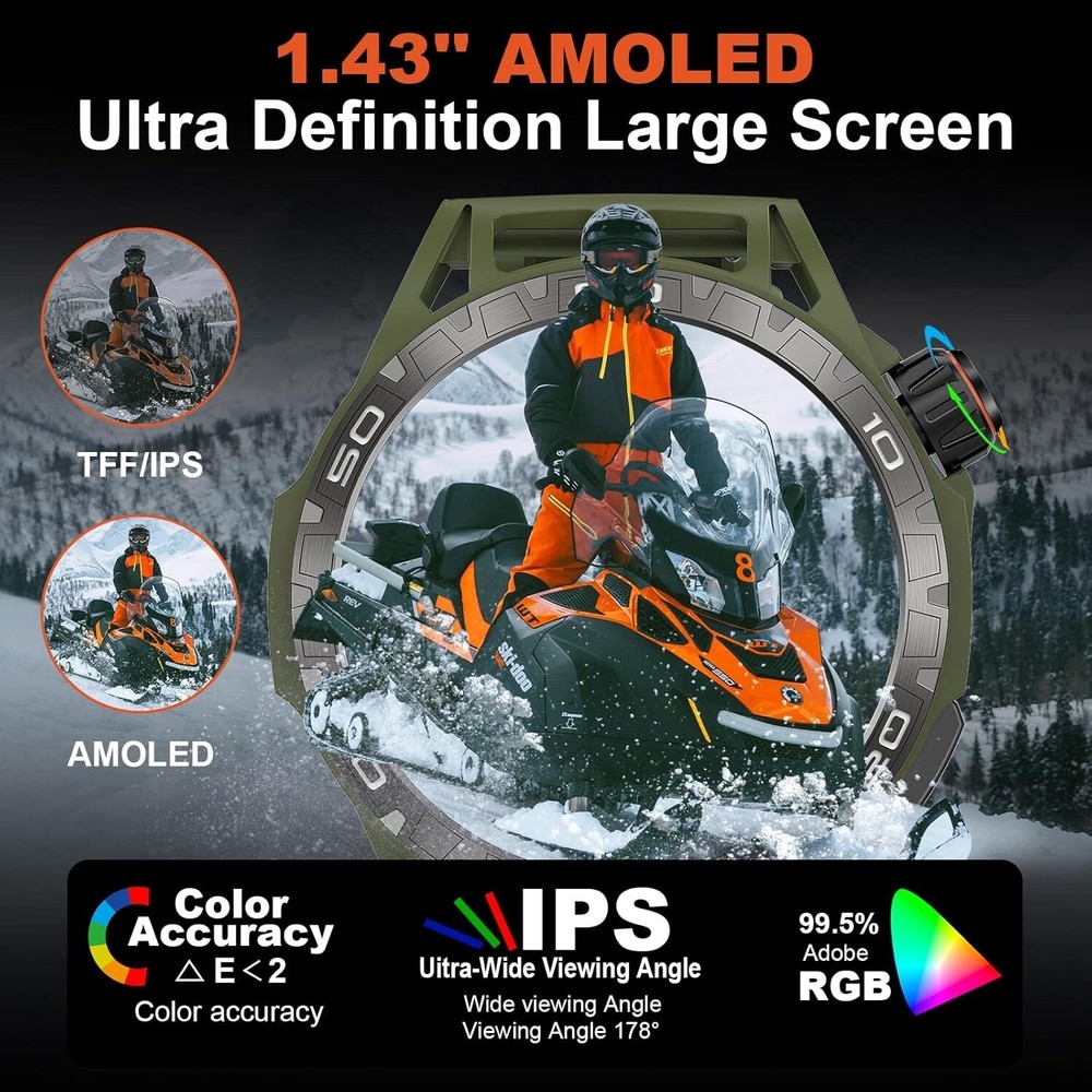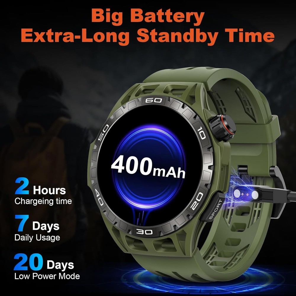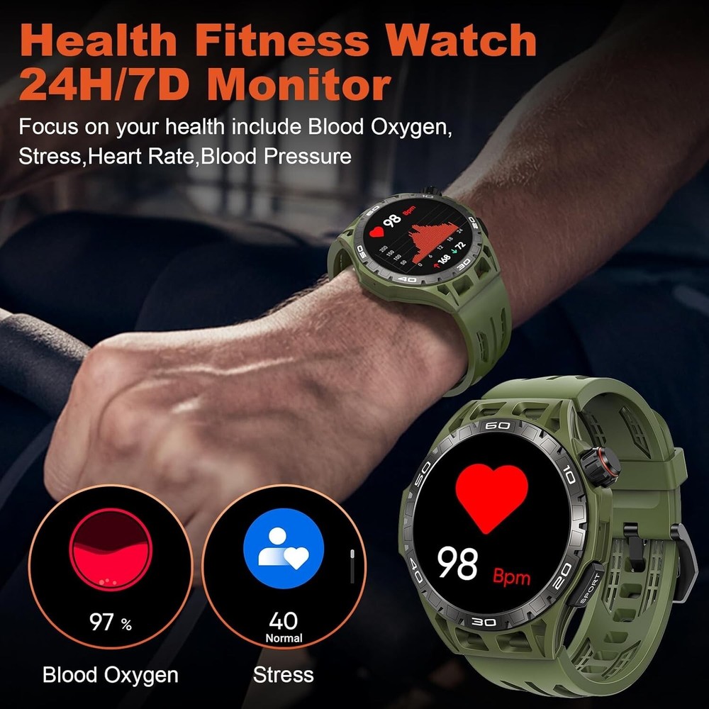 About this item 【Military Smart Watch & 5ATM Waterproof】Military smart watch for men has passed several military-grade tests such as extreme temperature -30℃-70℃, low air pressure, dust proof, and more for rugged durability! IP68 waterproof smartwatch is designed for professional outdoor sports, you can wear it to the deepth of water up to 50m, and the smartwatch still keep your data accurate 【Make/Answer Call & Message Reminder】You can answer/make/reject calls on your smartwatch via bluetooth function. After pairing your men's smartwatch with the APP "OnWear Pro" on your mobile phone, it will vibrate when you receive calls and messages (such as Twitter, Facebook, Skype, WhatsApp, etc.), so you won't miss any important messages. You can't be disturbed when you want to be quite or focus on working once you set DND mode 【110+ Sports Modes & Health Monitoring】Activity & fitness Smartwatch supports 110+ sports modes such as running, hiking, cycling, basketball, football, and more. You can select and replace as many exercise modes as you want in the APP "OnWear Pro". Smartwatch can also monitor your heart rate, spO2, blood pressure and sleep, make you know that your health real-time 【HD Touch Screen & Personalized Dial】1.43'' AMOLED Ultra definition Large Screen, 466*466px HD wide color gamut, clear picture quality, vivid and eye-catching on the wrist, presenting rich image details and color levels. You can choose the manu by rotating the Rotate button. Otherwise, there are many watch faces,and you can choose watch face you like to custom watch face 【Multifunctional & Long Endurance】Smartwatch has multiple smart functions. You can ask the weather forecast, set alarm clock and play music by vioce assistant. Otherwise there are some functions such as camera control, calendar, calculator, alarm clock, find phone etc. Smartwatch has 400mAh battery capacity , it takes 2 hours to charge, has a normal usage time of 5-7 days and a standby time of about 30 days 【Smart Watch Suitable for You】Military watches for men compatible with Android 6.0/iOS 12.0 and above. This modern watch for men women comes in a gift box, as a great gift for Birthdays, Christmas, Valentine's Day, New Year,Anniversary,Mother's Day,Father’s Day and more.They can wear the smart watch to know their health. 【After-sale and Quality Assurance】 We always promise a 3-Year warranty 30 days free returns and exchanges & 24 hours/7 Days lifetime tech support for your purchase. Please feel free to contact us for any problems you encounter in the future.We will try our best to help you to solve. Shipping We offer FREE shipping on all orders! We ship within Three business days of payment, usually sooner. We use a selection of shipping services such as UPS, FedEx, USPS etc. We only ship to the lower 48 states, no APO/FPO addresses or PO Boxes allowed. Local pickups and combined shipping options are not provided at this time. Return You can return a product for up to 30 days from the date you purchased it. Any product you return must be in the same condition you received it and in the original packaging. Please keep the receipt. Payment We accept payment by any of the following methods: PayPal Please pay as soon as possible after winning an auction, as that will allow us to post your item to you sooner! Feedback Customer satisfaction is very important to us. If you have any problem with your order, please contact us and we will do our best to make you satisfied. Contact Us If you have any queries, please contact us via ebay. We usually respond within 24 hours on weekdays. Please visit our eBay store to check out other items for sale! Thank you for shopping at our store. Disclaimer We are working with different suppliers in USA to deliver the item to your doorstep. If you have any issues regarding the item, Feel free to ask.