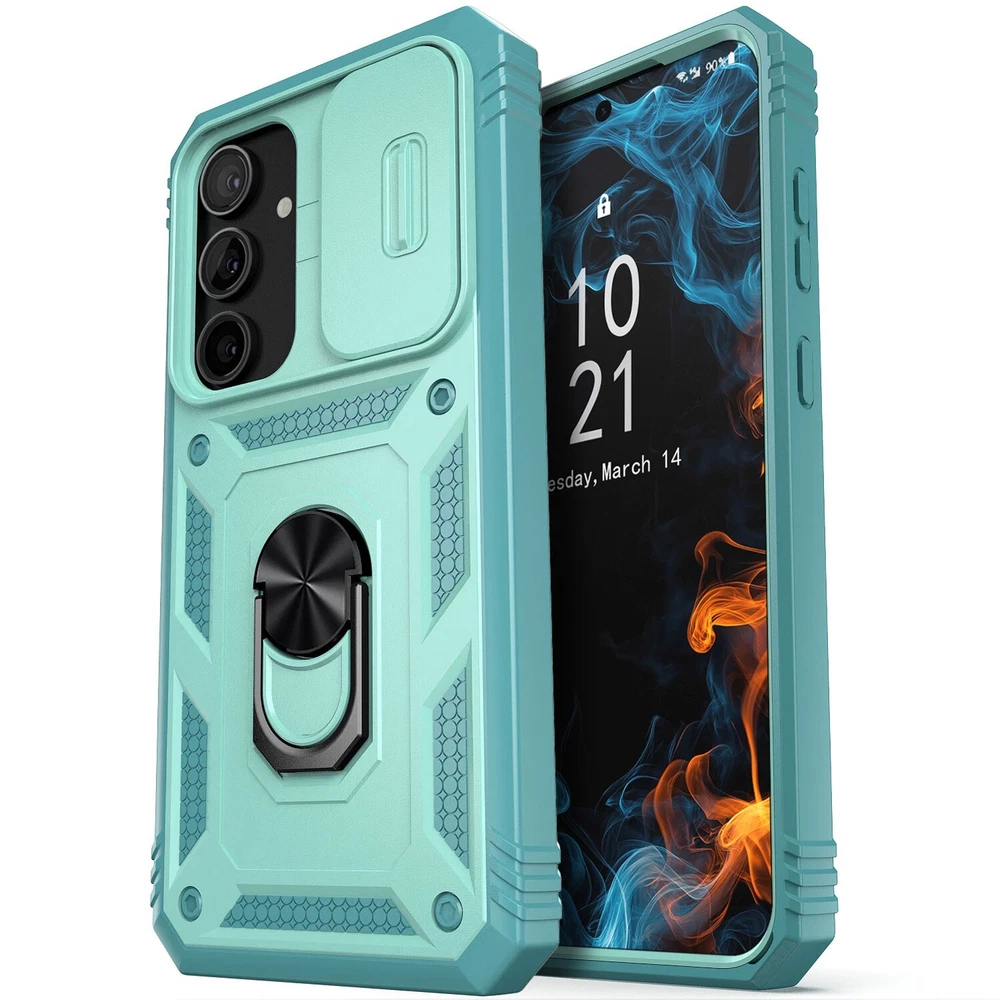 Compatible With: For Samsung Galaxy S24 FE Features: ▪ High Quality: The frame is made of flexible TPU silica gel which avoids your phone falling from high place. The back side of the case is made of hard PC that provides scratch protection. ▪ with Side Camera Cover: Slide cover design for protecting and hide the camera perfectly. ▪ Built-in kickstand: 360 kickstand Ring Stand offers convenient hands-free viewing from either landscape or portrait two different angles; ▪ Magnetic Car Mount: Built-in metal magnetic sheet which can be directly adsorbed stably to the magnetic car mount holder. (Not includes the magnetic car mount holder.) ▪ Precise Cutouts: Precise design, Easy access to all ports, buttons, and features. ▪ Raised edges design ensures extra protection for the screen and camera. Package: 1x Shockproof Ring Stand Cover with Slide Camera Case