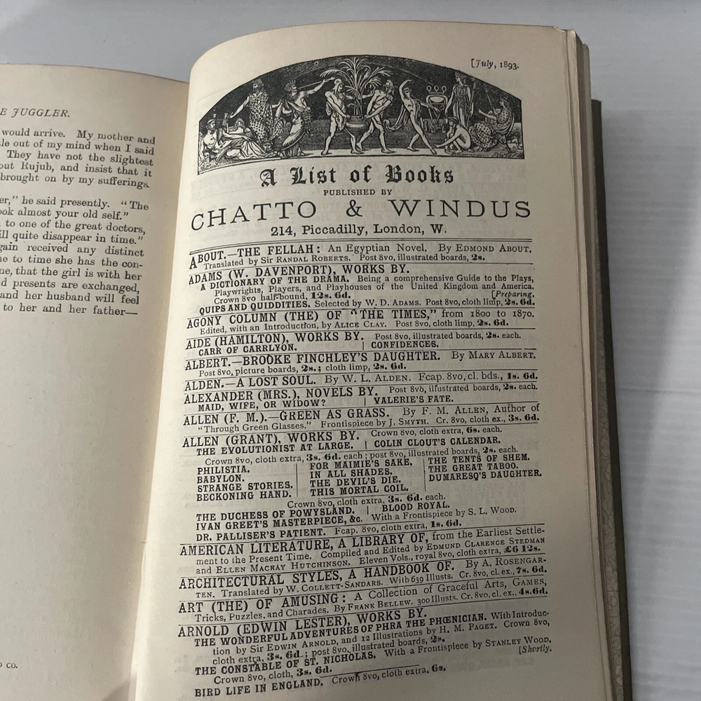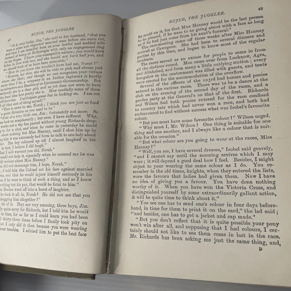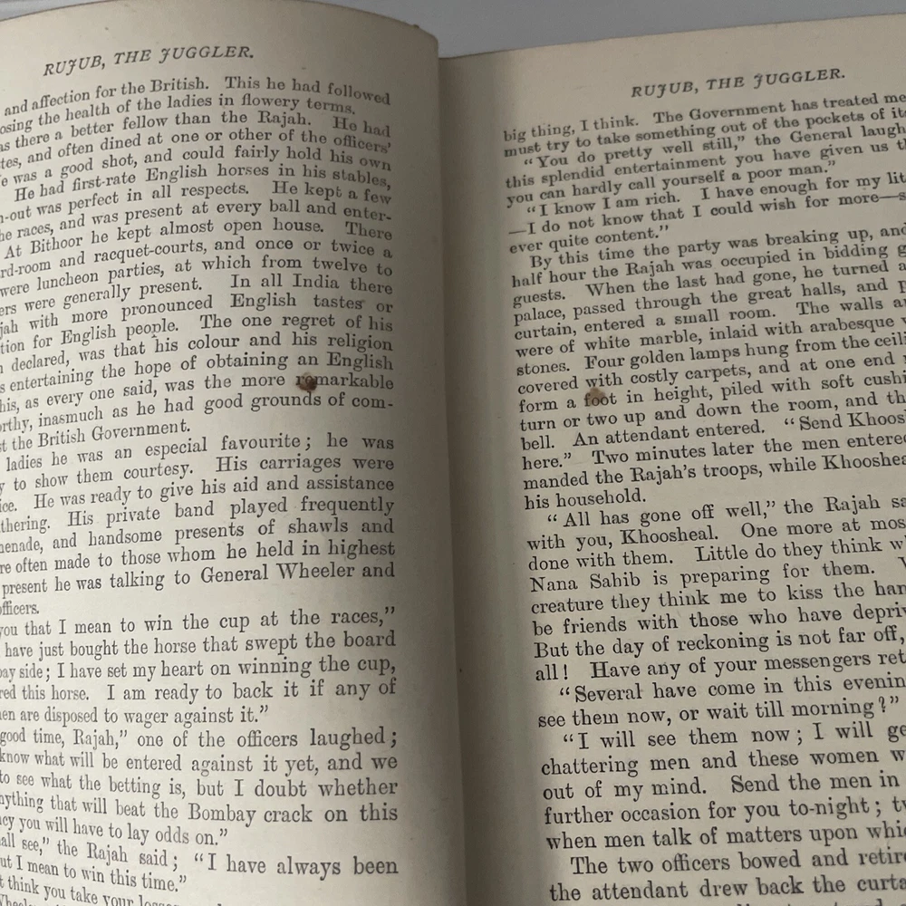 Rujub the Juggler G. A. Henty 1893 First edition, of this Samuel Wood-illustrated edition. With Pictorial cover & spine and 8 illustrations. Advertisements to rear showing date of July 1893 Chatto & Windus - Piccadilly London Set during the First Anglo-Afghan War (1839–1842). It follows the journey of a young British officer, William Gale, who is sent on a mission to Herat and Cabul (modern-day Kabul) amid the backdrop of political intrigue and military conflict. Henty's narrative weaves together adventure, danger, and historical events, showcasing his talent for bringing historical periods to life. The novel highlights the challenges and complexities faced by the British and their allies during this tumultuous time in Afghan history. G.A. Henty was a prolific English author and war correspondent, best known for his historical adventure stories, especially those geared towards young readers. Born in 1832, Henty wrote over 100 books, each with vivid historical settings and thrilling narratives. His works often featured young protagonists overcoming significant challenges and providing a look into various historical periods and events. Condition: VINTAGE GOOD - Photo's of Actual Product - See photos to confirm condition A ll pages present and a fully intact cover. Shows significant wear, including wear to the boards & textblock. Binding in tact, decorative pictorial cover and spine. Tanning & foxing. Slant to spine. ------------------- Please See my eBay shop for more Modern & Vintage Books Add as a favourite seller, new stock added daily Thanks for looking