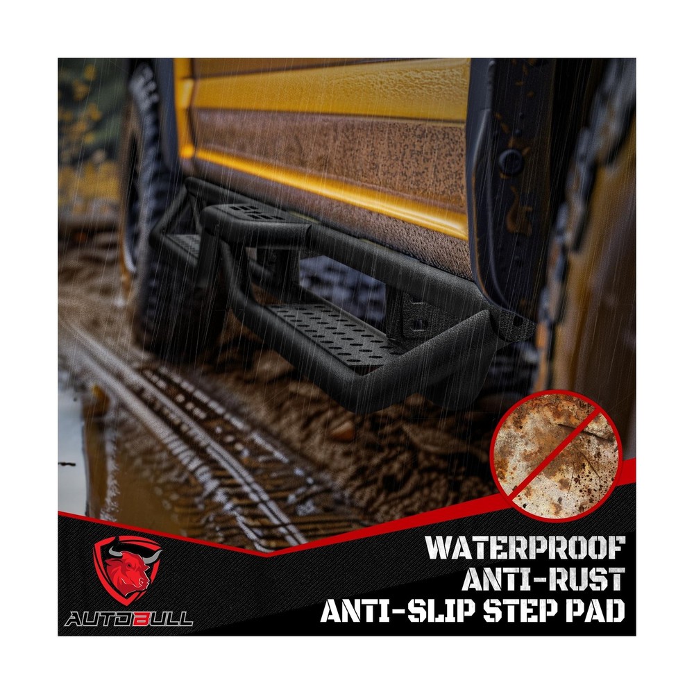 Running Boards Compatible with 2019-2025 Dodge Ram 1500 New Body Style Crew Cab 4 Full Size Doors, 6" 2-Stairs Side Step Rails Coated Black Carbon Steel Nerf Bars Description Features: Fitment:AutoBull running boards feature a distinct drop-down step design thats custom made for 2019-2025 Dodge Ram 1500 New Body Style Crew Cab 4 Full Size Doors only. Please check the cab picture in the listing before ordering. Functionality: The two stairs design provides easy access to your vehicle, making it easier to get in and out of the car, especially for children or elderly individuals. Safety: AutoBull side steps offer an extra step and secure footing when entering or exiting your vehicle, reducing the risk of slipping or falling. Protection: Our running boards help to protect your vehicle's exterior from scratches, dings, and other damages that can occur from debris or minor accidents. Style: The unique two stairs design adds a sleek and modern look to your vehicle, enhancing its appearance and making it stand out on the road. Durability: Constructed with 2 layers coated carbon steel and are designed to withstand various weather conditions and everyday wear and tear, ensuring long-lasting performance. What you get:A pair of side steps, including right and left side. 36 months warranty. Product Details: Color: Carbon Steel-star-black Brand: AutoBull Material: Carbon Steel Exterior Finish: Black Powder Coated Item dimensions L x W x H: 87.01 x 15.16 x 7.09 inches Vehicle Service Type: 2019-2025 Dodge Ram 1500 New Body Style Crew Cab 4 Full Size Doors Item Weight: 75.7 Pounds Automotive Fit Type: Vehicle Specific Fit Manufacturer: AutoBull Color: Carbon Steel-star-black Brand: AutoBull Material: Carbon Steel Exterior Finish: Black Powder Coated Item dimensions L x W x H: 87.01 x 15.16 x 7.09 inches Vehicle Service Type: 2019-2025 Dodge Ram 1500 New Body Style Crew Cab 4 Full Size Doors Item Weight: 75.7 Pounds Automotive Fit Type: Vehicle Specific Fit Manufacturer: AutoBull Model: 2019-2025 Dodge Ram 1500 New Body Style Crew Cab 4 Full Size Doors Item Weight: 75.7 pounds Product Dimensions: 87.01 x 15.16 x 7.09 inches Item model number: ABSS-0019 Manufacturer Part Number: ABSS-0019-FBA Date First Available: August 13, 2024 Delivery We Do Not Ship Outside of the Continental US. Return Policy All items qualify for returns within 30 days of receipt. Buyer is responsible for return shipping on any item that is not damaged. Feedback We take our reputation seriously, we buy and sell online, so we understand the value of trust. If you are unsatisfied with your order, please contact us and we will work with you to resolve it to your satisfaction.