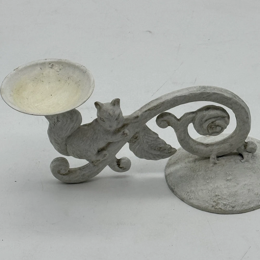 The Russ Berrie And Co Vintage Iron Squirrel Votive Candle Holder is a charming addition to any Country Cottage decor. Made of iron, this candle holder features a squirrel design, adding a touch of whimsy to any space. The white color and Country style make it a perfect accent for creating a cozy and rustic atmosphere. Perfect for holding votive candles, this decorative piece combines functionality with a cute animal theme for a unique look in your home.