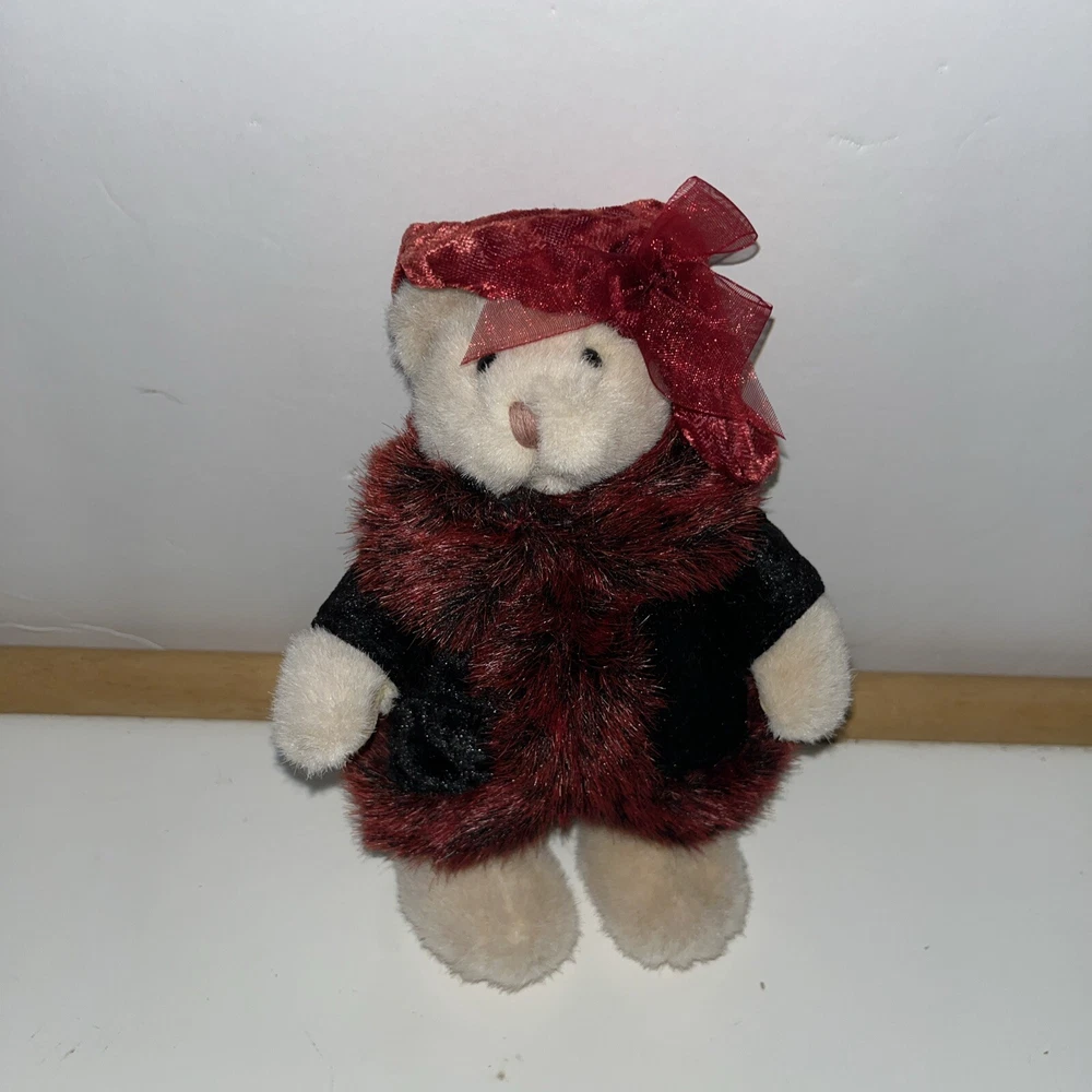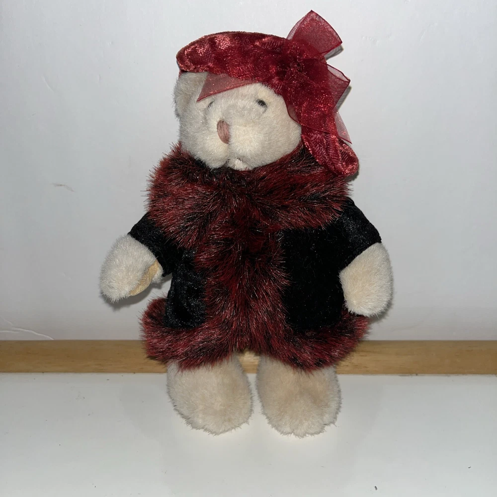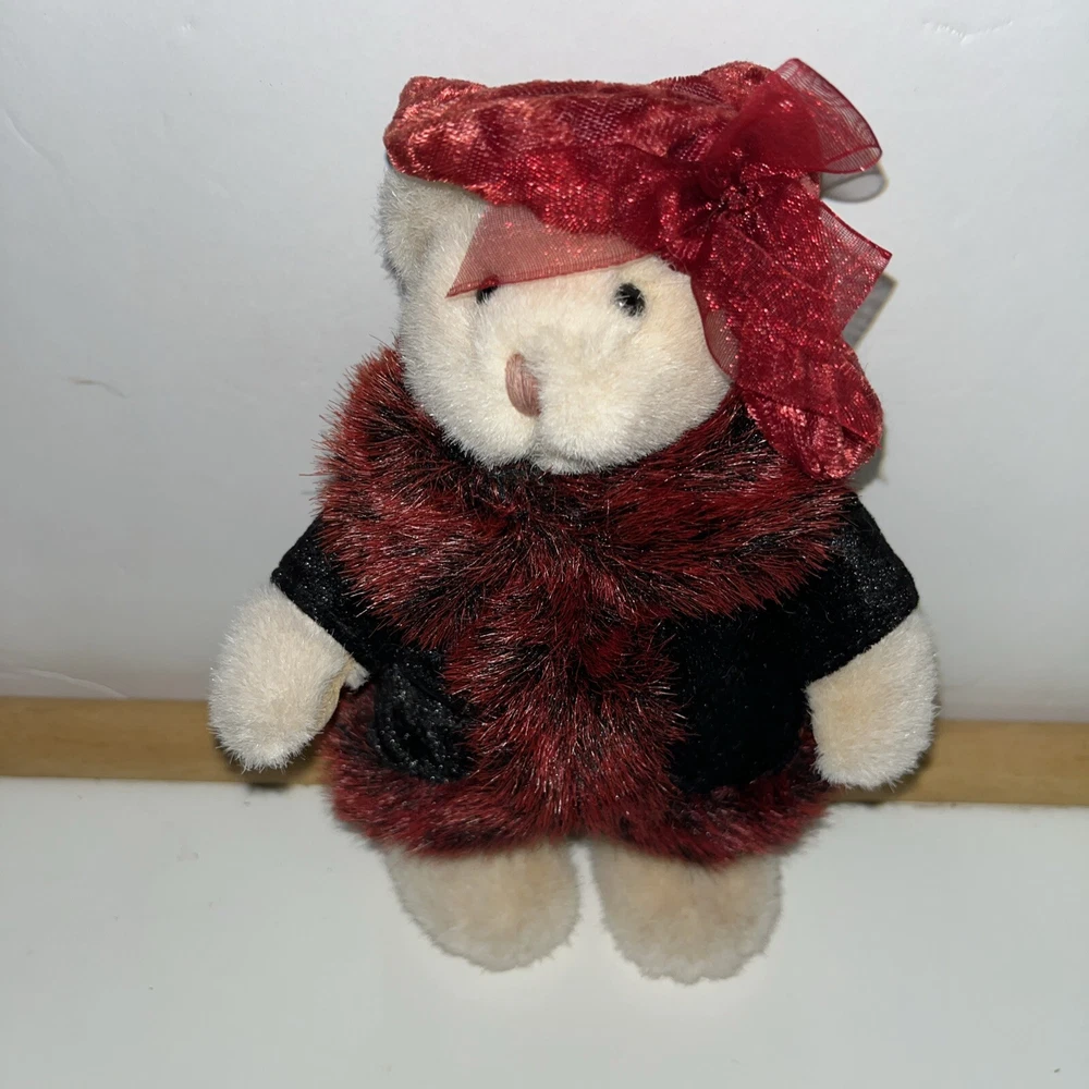 Russ Berrie "Natasha" Plush Small Bear Stuffed Animal 7” Standing Faux Fur Coat