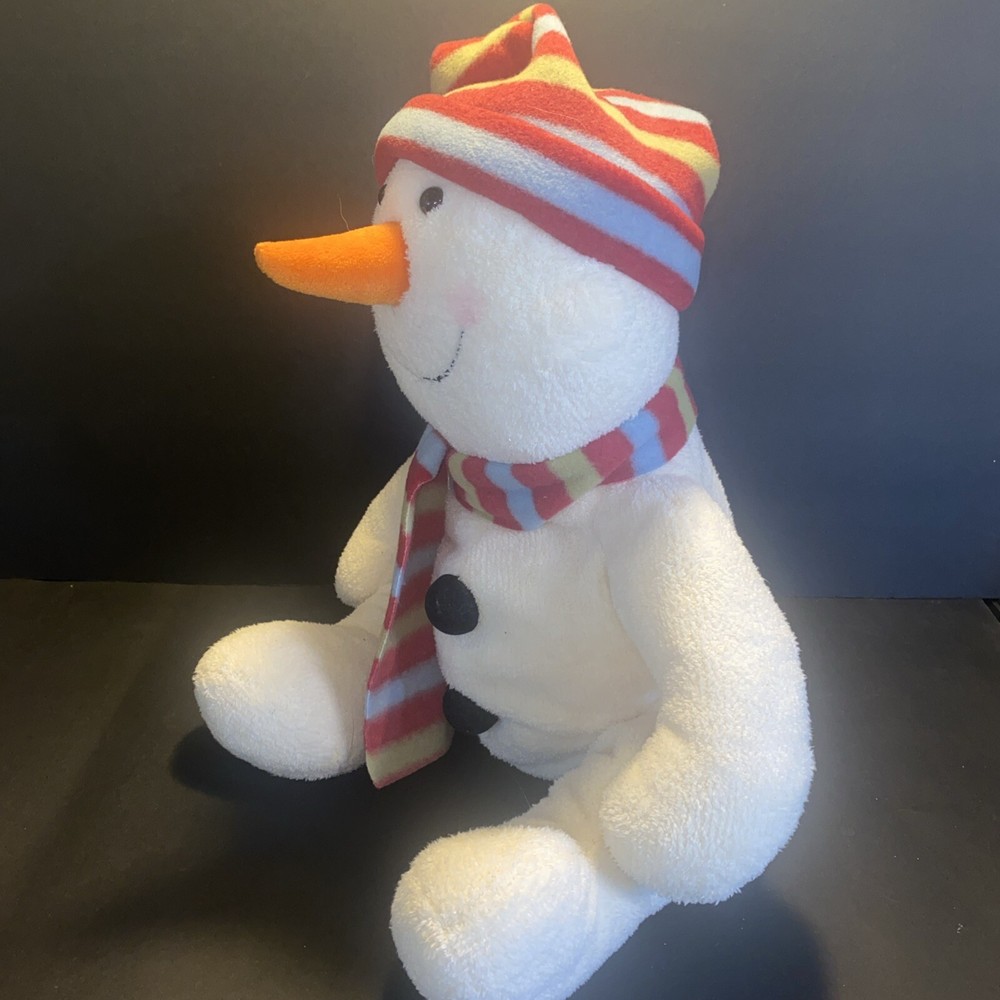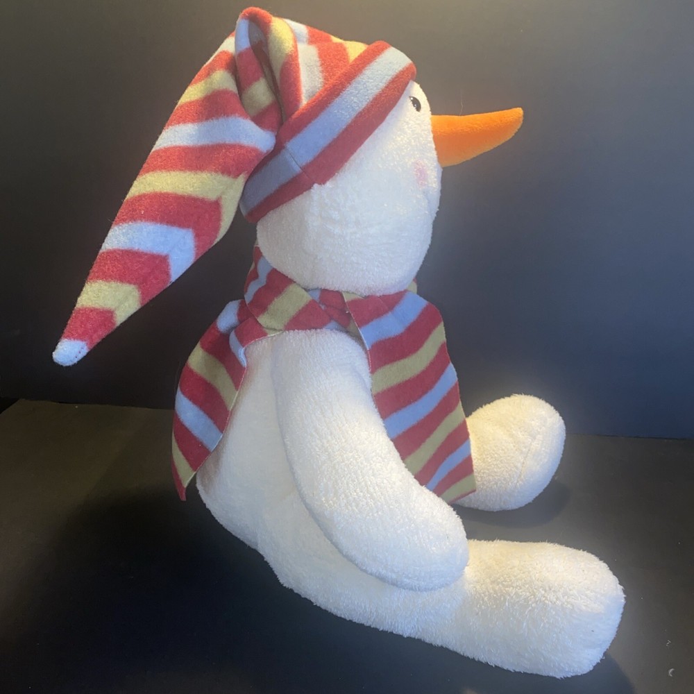 HomeRuss Berrie Snowdin Snowman Red Striped Scarf & Hat Beanbag Plush Stuffed 20”