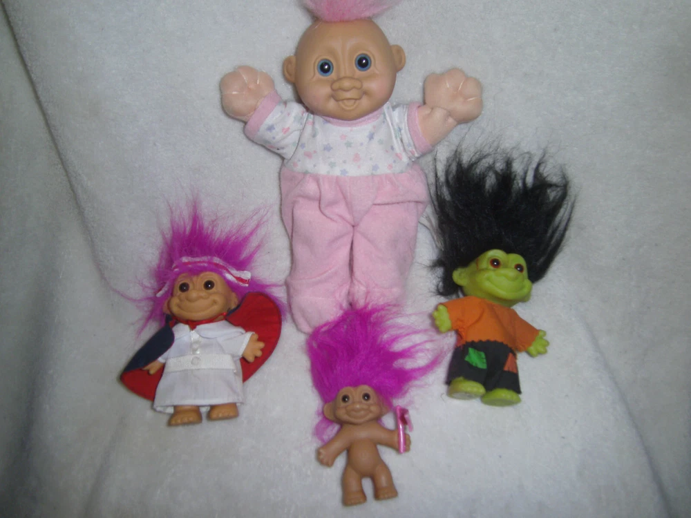 Trolls 6 assorted You get these Russ Berrie & company * 9 inch Baby, * Frankenstein * Nurse * Nobodys Perfect No clothing (has sign that says Nobodys perfect) Ace Novelty * Red Jewel in stomach no clothing * Blue Jewel in stomach no clothing