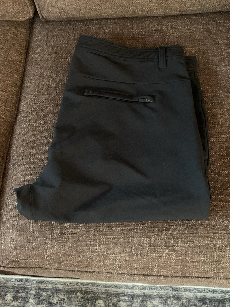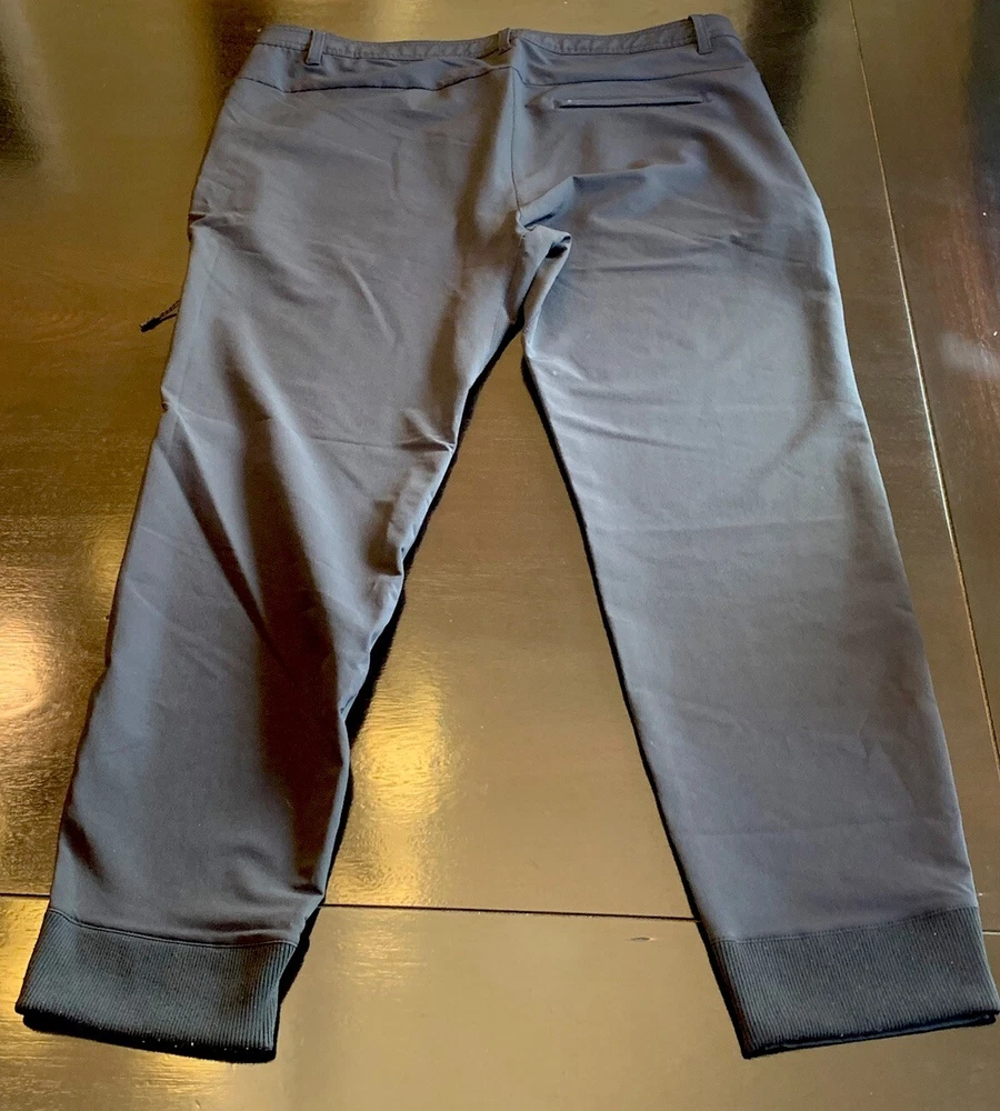 ***2nd and last photo shows the true color of this item, the pants are Black, not charcoal, the material of the pants with the lighting changes the color in the photos*** **Pre Owned, no odors, pet and smoke free home** *Pants have some marks on them from wear and tear please see all photos to see the overall condition of these pants* The Russell Athletic Tech Pants in size L are designed for outdoor activities, featuring a solid green color and a durable cotton blend material with microfiber fabric type. These jogger-style pants have a zip closure and multiple pockets for convenience. The water-resistant design makes them suitable for various sports like tennis, soccer, hiking, and more. With a regular fit and machine washable care instructions, these versatile activewear pants offer both style and functionality for active men on the go.