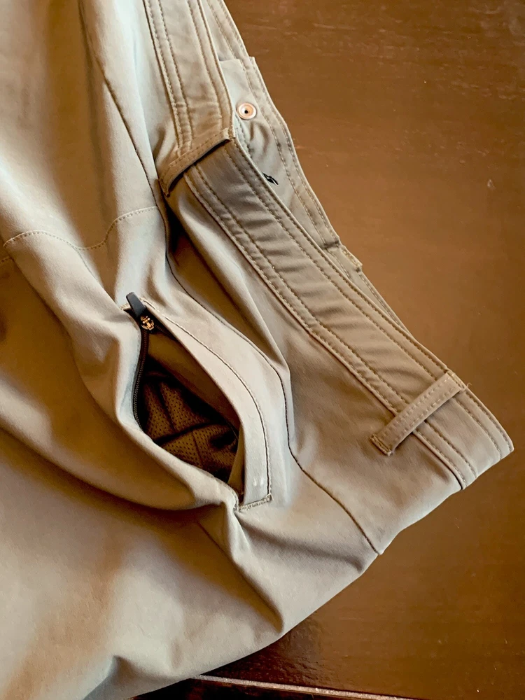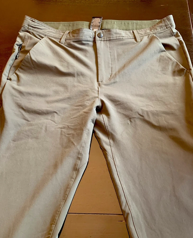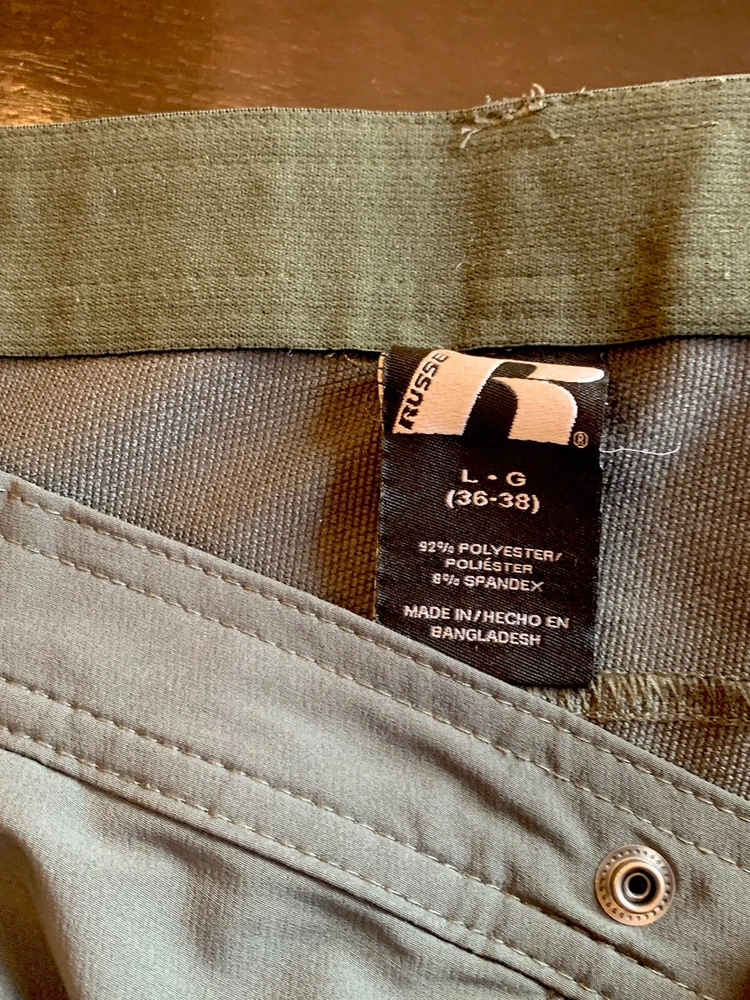 Russell Athletic Tech Chino Pants Men’s Size L Green with Zip Pockets for Outdoor Activities