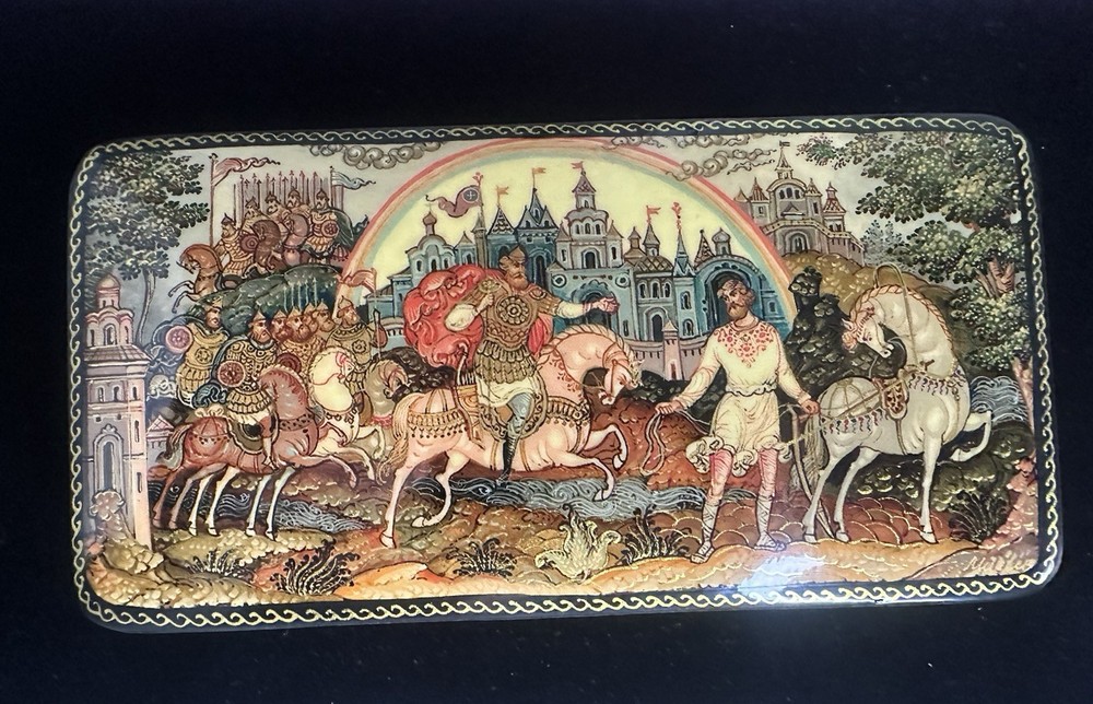 Russian Bogatyr Lacquer Box Keepsake Trinket Box Jewelry Box . Condition is New. Shipped with USPS Ground Advantage.