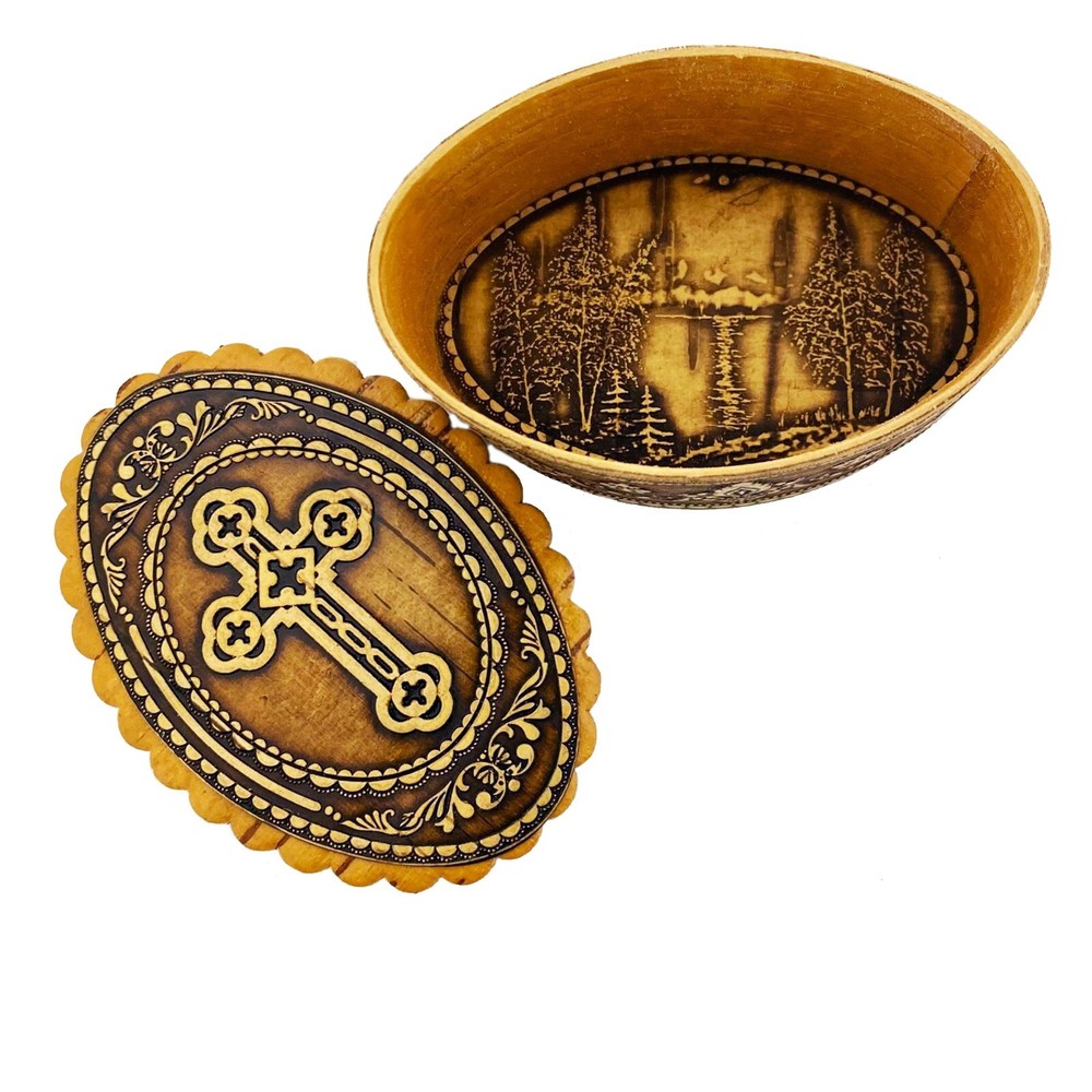 Rare and unique Russian Birch Box - Perfect for rosary any prayer beads jewelry Catholic Christian Orthodox Cross On Top - Religious gift Idea for man or woman on Christmas Day, Easter, Birthday, mothers day, fathers day or any other occasions Birch played a large part in daily life in old Russia. Birch bark from the Birch tree was used as insulation between layers of clothes, icons for traveling and containers it was said you could keep salted fish in a container for years - rinse it out and drink wine from it. As with most household items the birch boxes were decoratively carved with religious and folk motifs Hand Made - High Quality Russian Box - impressive quality Measures - 2 3/4 inch x 1 3/4 inch wide x 1 3/8 inch tall - fits all rosary - rings anything small Track Page Views With Auctiva's Counter