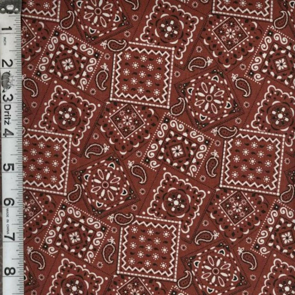 Rust Blazin Bandana Paisley Fabric Remnant 31in by 44in 100% Cotton Condition : New Brand: MDG Designer: Fiber: 100% Cotton Weight: Quilt and Fashion Cut Size: 31 inches by 44 inches wide Care: Prewash like colors together. Tumble dry low. cool iron Not suitable for Children's Sleepwear Colors can vary from one monitor to another. This listing is for a fabric remnant 31 inches by 44 inches wide of 100% Cotton in a fun bandana design in rust with black and white accents. from the "Blazin' Bandana" collection from MDG. Fabric is new and lovingly stored in my smoke free home. Q-976B I'm always happy to combine your purchases for one week at a time to help save on shipping costs When purchasing multiple items..please use the shopping cart commit to your purchases then request combined invoice I can not combine shipping for the best price after separate payments are made. I want to personally thank you for shopping Morningdovesnest International customers: * Import duties, taxes and charges are not included in the item price or shipping charges. These charges are the buyer’s responsibility. * Please check with your country’s customs office to determine what these additional costs will be prior to bidding/buying.” “ We do not mark merchandise values below value or mark items as ‘gifts’ - US and International government regulations prohibit such behavior.”