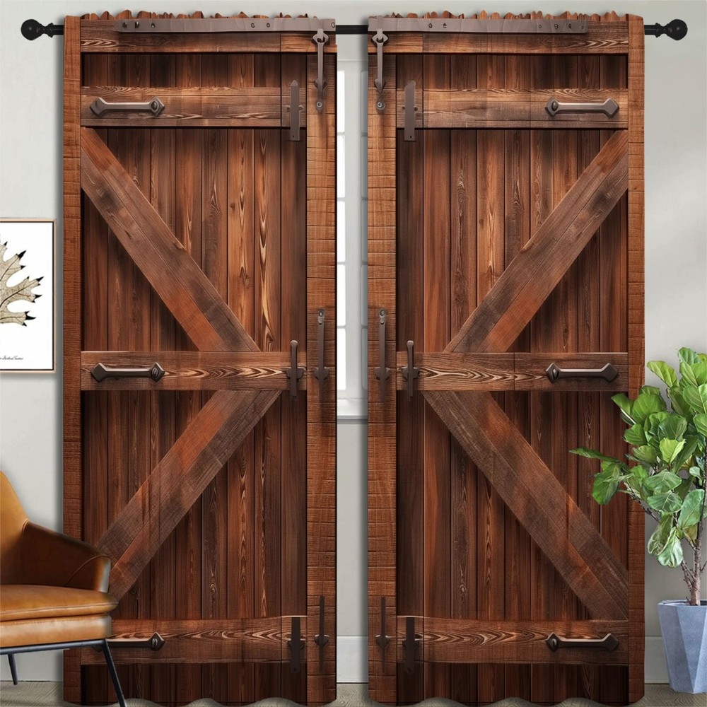 $ 54.94Rustic Wooden Barn Door Blackout Window Curtains, Vintage Wood Western Cowboy...