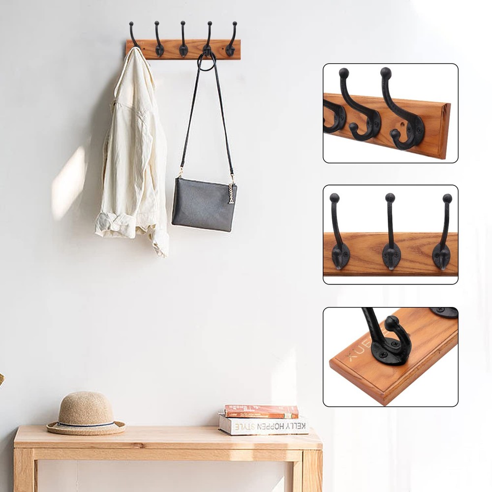 Rustic Cast Iron Coat Hooks Black Wall Hooks Coat Rack Heavy Duty Coat Rack with 5 Wall Hooks,Bedroom Ash Wooden Modern Farmhouse,Entryway Hooks, Bags,Towels Solid Wood: Made of heavy duty cast iron hooks + high quality ash wood, not easy to break, resistant to daily scratches, corrosion and tarnishing, the rustic finish adds some goodness to your home and is perfect for long-term use. Sturdy Coat Hook Wall Mount: You can hang your items on the upper and lower hooks without worrying about scratches, with 5 hand-installed cast iron hooks + ash wood base to create more storage space. Perfect size: 16.7*2.98*2.98 inches, hook height 4.72 inches, hook to base distance 3 inches, plank thickness 0.74 inches, hook base width 2 inches, rustic cast iron coat hook wall mount, can store all your belongings at once . Cast Iron Hook: Will not bend or break, retro style, heavy duty and sturdy. Easy to install (including mounting hardware), introduces a unique vintage-inspired, stylish and beautiful hanger that brings a touch of elegance and simplicity to your home or wardrobe. Multifunctional Wall Hanging Coat Rack: Add stylish organization to your entryway, kitchen, closet, hallway, bedroom, bathroom, hallway, etc. Rustic look, rough surface, perfect for organizing your coats, scarves, umbrellas, bags, towels , keys, mugs, hats, jackets, robes, backpacks, as well as Christmas stockings and Christmas wreaths, etc. Modern home or garden decor Wall-mounted coat racks, retro designs and rustic surfaces add a unique farmhouse style to your home, providing the perfect finishing touch and adding elegance to your home. Package includes -1*coat rack+2*screws+2*ribbed plastic anchors Material: cast iron hook + ash wood Color: dark brown, light brown Weight: 2.20 lbs Size: 16.7*2.98*2.98 inches Hook Height: 4.72 inches Hook to base distance: 3 inches Board Thickness: 0.74 inches Hook base width: 2 inches Rugged and Serviceable: 1. Not easy to break, resistant to daily scratches, corrosion and tarnishing. 2. The rounded ends of the hanger hooks protect your clothes from obstruction and damage. 3. The versatile wall-mounted hook is elegantly designed, and the black hook blends perfectly with any decor. Easy to install: 1. Line up the base with the wall and mark the midpoint of the hole in the wall with a pencil. 2. Drill holes where you marked, make sure the drilled holes are perpendicular to the wall, insert the plastic anchors into the 2 holes in the wall 3. Thread the 2 screws through the coat rack into the wall, hitting the anchor with a hammer if needed. 4. Insert the screw into the plastic anchor and start turning clockwise, do not drive the screw all the way into the wall. 5. Hang the wall mount on the screw head. Multifunctional Wall Mount Coat Rack: A must-have for entryways, mudrooms, closets, bedrooms, kitchens, hallways and more. Perfect for hanging your clothes, jackets, coats, hats, baseball caps, scarves, dog leashes, keys, scarves, backpacks and more, while improving your home decor for a cleaner look. Also, a great gift option for friends and family. SHIPPING Domestic Buyers - We have confidence in our products, but if you are not fully satisfied please contact us within 30 days of purchase and you will get full refund. - We ship within 3 business days of payment, usually sooner - We offer FREE shipping on all orders! - We only ship to the lower 48 states, no APO/FPO addresses or PO Boxes allowed International buyers – please note: Import duties, taxes, and charges aren't included in the item price or postage cost. These charges are the buyer's responsibility. - Please check with your country's customs office to determine what these additional costs will be prior to bidding or buying. * Order Cancellation Policy ** You can return a product for up to 30 days from the date you purchased it. 1. The seller reserves the right to cancel the special case only due to eBay cancellation fee. 2. The decision of seller is the final. 3. The seller will respond to the cancellation request within 2 business days. Please wait for the result of cancellation. 4. In case the cancellation is not completed by some reasons, the buyer can follow the options below to get the refund. 4.1 The buyer can reject the item when it arrives. 4.2 The buyer can send the item back to the seller within 30 days If the buyer receives item (USA Shipment ONLY). The seller will provide the FREE return label to the buyer when the buyer opens " Return Item" case on eBay by using the reason as "Change my mind" ONLY. 5. When buyer has placed the order. The order will be processed and completed by automatic warehouse system within 5 minutes. In case that buyer sends the cancellation request after 5 minutes of placing the order, the request will be rejected. **Sending direct message to cancel the order is not allowed for every case.* Return Policy For the return case - If buyer would like to return the items for refund or replacement, please CONTACT SELLER to receive the free return label from seller. The refund or replacement will be processed with the tracking number of return label which is provided by seller only. The other ways of return which are not approved by seller will not be processed for the refund or replacement.