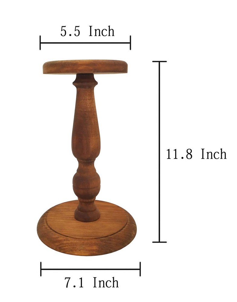 Rustic Brown Vintage Style Wood Hat Stand, Holder Display, Helmet Organizer Storage - Vintage Style : Wooden hat stand and tabletop stand with rustic brown finish. - Functional & Convenient : a wide variety of headwear such as hats, caps, beanies, cowboy hats, helmet, and more. - Stylish Antique Design : Turned base and post, with vintage-inspired style, make an attractive setting for hats to be stored. - Merchandise & Collectible Display : Stylish stand is perfect for merchandise displays select hats or displaying rare headgear, as well as at home storage. - Approximate Dimensions : Base: 7.1 Diameter; Height: 11.8; Rounded top: 5.5. (in inches) For the person who wears many hats, this vintage style hat, , caps, beanies, cowboy hats and helmet display stand is the perfect solution for your home or . Antique and rustic features come together to form an ideal for hanging caps, fedoras, beanies, and any hats you can possibly imagine. The rounded top design on this hat rack also works perfectly for wigs of all types. Keep this hat rack on your dresser to show off your head accessories while keeping them organized and pristine. Material: Wood. Vintage Style: Wooden hat stand and tabletop stand with rustic brown finish. Functional & Convenient: a wide variety of headwear such as hats, caps, beanies, cowboy hats, helmet, and more. Stylish Antique Design: Turned base and post, with vintage-inspired style, make an attractive setting for hats to be stored. Merchandise & Collectible Display: Stylish stand is perfect for merchandise displays select hats or displaying rare headgear, as well as at home storage. Approximate Dimensions: Base: 7.1 Diameter; Height: 11.8; Rounded top: 5.5. (in inches)