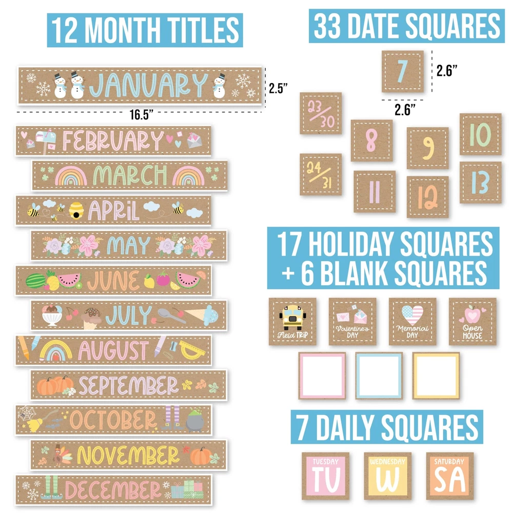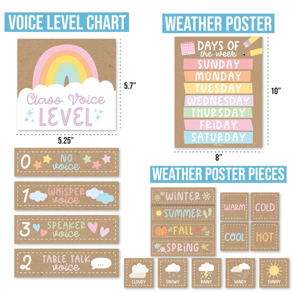 If You’re Looking To Make Circle Time Educational And Fun; Then you need this modern farmhouse calendar set for classroom elementary; While other calendar classroom are made overseas, our preschool classroom calendar set is proudly USA made Get Kids Excited About Their Day; You'll receive 98 individual calendar pieces, 1 - 8x10 weather chart, and 1 - 11x14 days of the week poster; Inspire a love for learning with this boho kraft school calendar for classroom elementary/teacher calendar for classroom Capture Attention And Boost Focus; This bright colorful calendar numbers for classroom helps grab and hold kids' attention; Skyrocket learning speed and retention with this classroom decorations, classroom wall calendar, months of the year bulletin board set Sharpen Critical Thinking Skills; Use as a bohemian homeschool calendar, kindergarten calendar for classroom, voice level poster for classroom, weather chart for classroom, months of the year for classroom, bulletin board decorations for classroom