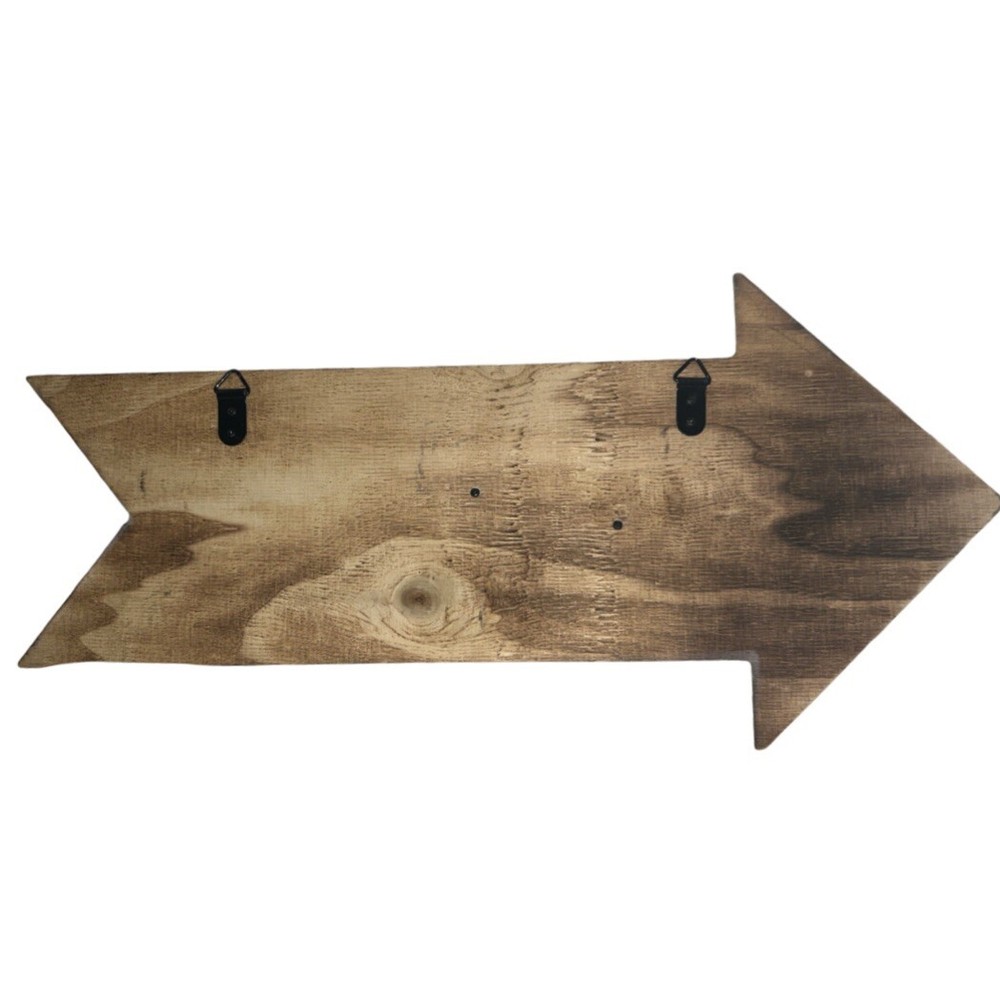 Really unique looking sign in the shape of an arrow 3-D like letters in the shapes of objects spelling out the word Distressed off white quality wood Great for a man cave or bathroom decor Measurements: 25" wide x 9.5" tall Be sure to ask all questions is there are no Please view all photos as they are part of the description