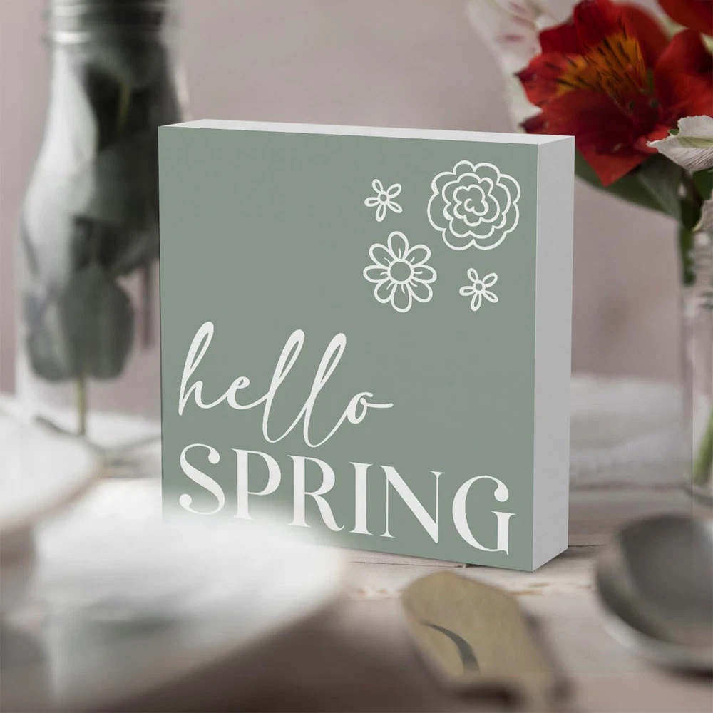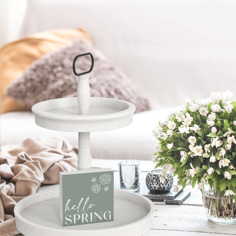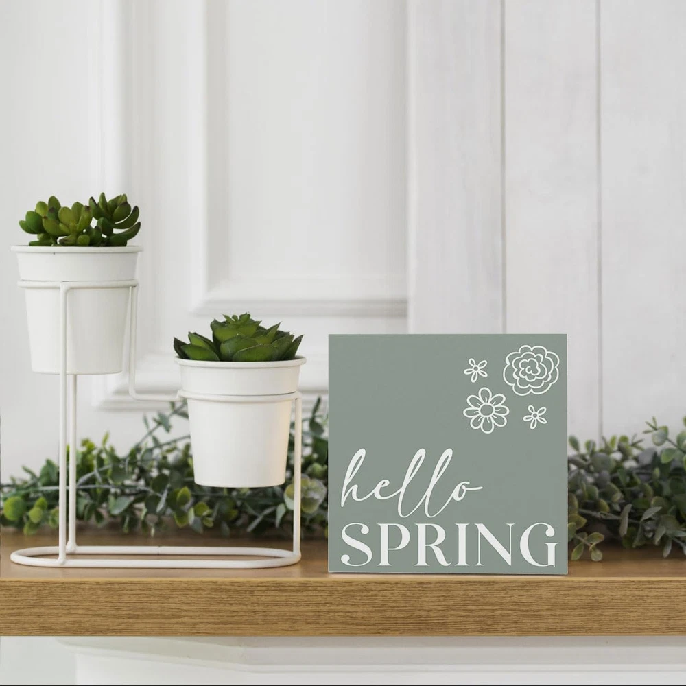 Rustic Farmhouse Spring Flowers Table Decor Country Home Office Desk Decor Hello