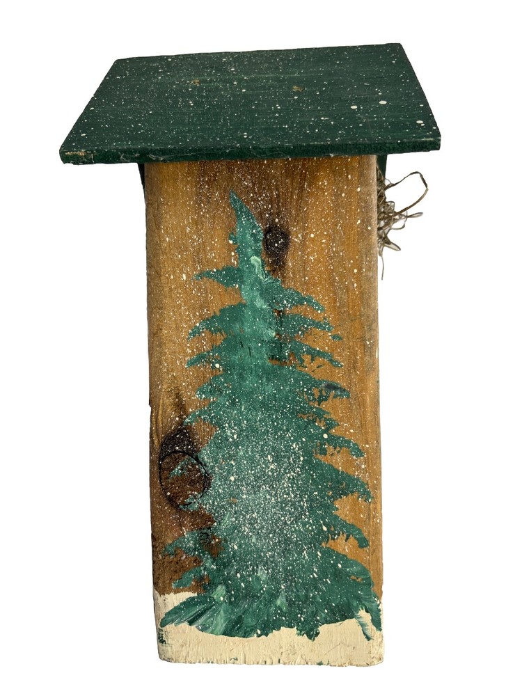 See pics for any imperfections they are part of the description. This Folk Art Wood Post Bird House features a festive Christmas Santa design, perfect for the winter season. Handmade from wood, this multicolor bird house adds a charming touch to your outdoor decor.
