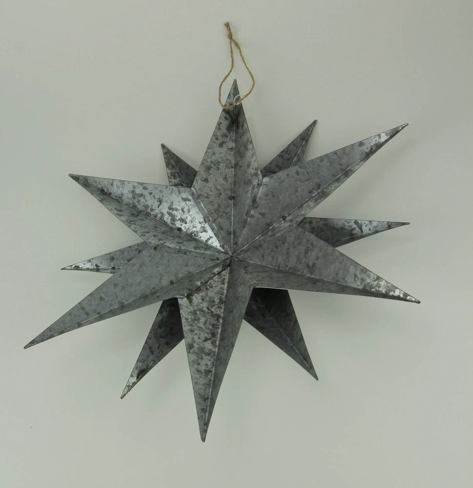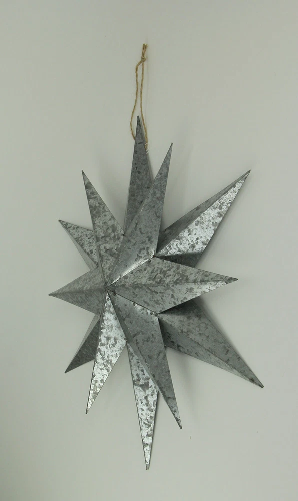 Bring this set of decorative stars inside your home for a simple yet elegant addition to your decor. Each piece is creatively crafted of metal in a stylish double-layer design with 12 points. The galvanized finish gives the set a rustic look that will quietly enhance almost any decor style. Bring them out and let them shine as part of your holiday decor, hang them from the rope hanger just the way they are, or customize them to suit your decorative needs with lights, ribbons, and baubles. However you choose to display or use these stars, they're a fun and simple way to add character and charm just about anywhere, indoors or outdoors. Our eBay Store About Us Add to Favorite Sellers Rustic Galvanized Metal 12 Pointed Star Wall Sculptures Set of 3 OVERALL SIZE - LG - 18 Inches in Diameter by 2.25 Inches Wide / MD - 15 Inches in Diameter by 1.75 Inches Wide / SM - 10.25 Inches in Diameter by 1.5 Inches Wide Creatively Crafted of Metal in a Stylishly Sculptured Double Layered Dimensional Design with a Rustic Rope Hanger Rustic Galvanized Finish Complements Most Any Interior Style Making it Easy to Blend in with Your Existing Decor Let Your Inner-Decorator Out, Display them Just they are or Customize them to Suit Your Decorative Needs Perfect for Holiday Decorating or as Part of Your Everyday Decor Bring this set of decorative stars inside your home for a simple yet elegant addition to your decor. Each piece is creatively crafted of metal in a stylish double-layer design with 12 points. The galvanized finish gives the set a rustic look that will quietly enhance almost any decor style. Bring them out and let them shine as part of your holiday decor, hang them from the rope hanger just the way they are, or customize them to suit your decorative needs with lights, ribbons, and baubles. However you choose to display or use these stars, they're a fun and simple way to add character and charm just about anywhere, indoors or outdoors. Product Details Color Gray Height 18 Length 18 Weight 1.15 LB