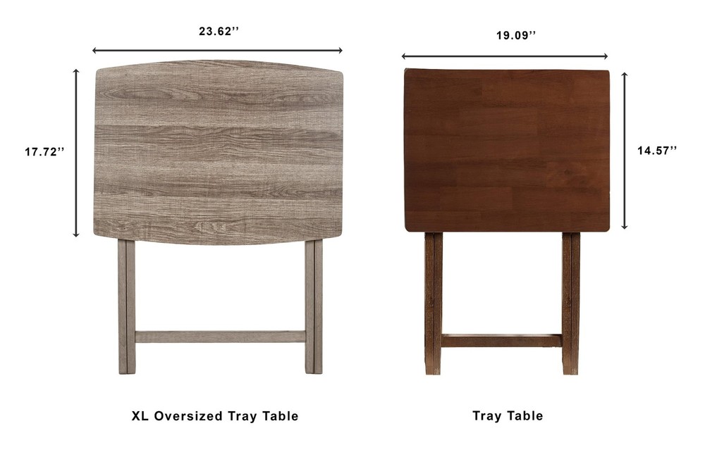 Mainstay Indoor XL Tv Tray Oversize Sturdy Construction: Crafted with a combination of durable MDF and solid Rubberwood, this table ensures longevity and stability. The robust build can withstand daily use, making it a reliable choice for your indoor spaces. ,Mainstay Indoor XL Tv Tray Oversized Design: With dimensions of H26" x L23.6" x W17.7" inches,Foldable Convenience: The folding feature adds practicality to this table, allowing for easy storage when not in use. Perfect for those with limited space, the foldable design ensures you can tuck it away effortlessly when you need to reclaim your living area.Mainstay Indoor Folded dimension: 29'' H x 1.7'' W x 19'' L,Tray table measures 26" H x 23.6" W x 17.7" D,Mainstay Indoor Table weight 4.55 KG Mainstay Indoor XL Tv Tray Oversize Sturdy Construction: Crafted with a combination of durable MDF and solid Rubberwood, this table ensures longevity and stability. The robust build can withstand daily use, making it a reliable choice for your indoor spaces. Mainstay Indoor XL Tv Tray Oversized Design: With dimensions of H26" x L23.6" x W17.7" inches, this table provides ample surface area for a variety of activities. Whether you're enjoying a meal, working on your laptop, or simply need extra space for decor, this oversized tray table has you covered. Foldable Convenience: The folding feature adds practicality to this table, allowing for easy storage when not in use. Perfect for those with limited space, the foldable design ensures you can tuck it away effortlessly when you need to reclaim your living area. Rustic Gray Aesthetics: The rustic gray finish adds a touch of sophistication to your decor. The neutral color blends seamlessly with various interior styles, making it a versatile and stylish choice for any room. Mainstay Indoor Lightweight Portability: Weighing only 4.55 KG, this table is easy to move around as needed. Whether you're rearranging your living space or hosting guests, the lightweight design ensures you can effortlessly transport the table wherever it's needed. MDF Table Top and Rubberwood Legs: The MDF tabletop offers a smooth and easy-to-clean surface, while the solid Rubberwood legs provide a sturdy foundation. The combination of these materials ensures both aesthetic appeal and practical functionality. Mainstay Indoor Folded dimension: 29'' H x 1.7'' W x 19'' L Tray table measures 26" H x 23.6" W x 17.7" D Mainstay Indoor Table weight 4.55 KG Mainstays Indoor Oversized Single Folding Tray Table, Rustic Gray, 26" x 23.6 x 17.7" inches. Assembly height 26 inches thoughtfully designed to effortlessly fold away conveniently when not in used, saving spaces when needed. Its classic minimal curved rectangular table top shape along with open up X-frame bases make these table not only look good but also help with stability. Its wooden rustic gray finish looks also sure to compliment any decor scheme! It is ready to use, stylish, durable, light weight and easy to store tables on hand! It sits at a perfect height while you're seated, and rest on intersecting legs to create a strong base for anything you put on its surface. It is the perfect addition to dorm rooms, or smaller living spaces. Use it to instantly creates a desk, small kitchen table and work surface, meals by the television. Its sleek design can also fit in with many styles of décor, a perfect choice for every home. Constructed of MDF tabletop and solid rubberwood leg. Table measurement 26" H x L 23.6" x W 17.7" inches. Enhance your living space with the Mainstays Indoor Oversized Folding Tray Table in Rustic Gray. This versatile and stylish table effortlessly combines functionality with rustic charm, making it an ideal addition to any home. Elevate your home with the Mainstays Indoor Oversized Folding Tray Table, a versatile and reliable piece that effortlessly combines style and utility. Order yours today and experience the convenience of functional furniture that complements your lifestyle. Mainstay indoor XL oversize tray table folded dimension: 29'' H x 1.7'' W x 19'' L inches. No assembly require for XL folding tray tables. The weight of table is 4.55 KG which make it easy portable from one place to another. On Jul 2, 2025 at 19:17:28 PDT, seller added the following information: