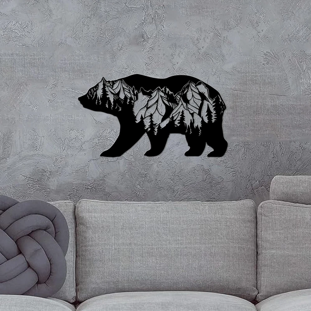 Metal Mountain Forest Bear Creative Wall Hanging Art Decor - Get Decorating Inspiration 1. The metal hollow cutting design makes the rustic art and the wall look like one, showing the color of the wall and highlighting the flexibility of the product. 2. From home to your office, this unique wild bear art will fit in anywhere you put it. 3. The product is light and flexible, and the overall vision after decoration is also beautiful. 4. Whether you are going for a rustic cabin, bohemian palace, or nautical lake house, or even a this peak and pine tree bear art fits right in. Its universal design makes it incredibly versatile. Specifications Color: Black, Black Material: Powder Coated & Steel Type: Hanging Decoration Package Included: 1 Piece Set Bear Art & Mounting Screws Notice: * Due to the different lighting environment, the color of the product may be slightly different from pictures. * Please allow 1-3% size difference according, due to the manual measurement. Please make sure you do not mind before you bid. Exquisite Design:The metal bear wall art have a unique design and precision cutting process, you can see different micro landscapes on the bears, like mountains, forests, starry skies and moons, which can add a sense of design to your space! Size:The cabin peak and pine tree metal bear wall sculptures is 15.7''Wx9''H,very good for your bedroom,kitchen, livingroom,hallway,garden,and entrance decoration. Good Quality:Our metal rustic forest wall decor use metal cutting process, the product has smooth edges and outstanding details, which can be used for a long time. Easy To Hanging:This metal bear wilderness wall arts are designed with holes for easy hanging, no assembly required, you can hang it in seconds indoor and outdoor. Best Gift Choice:The bear wall decoration shows the buyer's unique aesthetics.It's a best gift choice for housewarming, birthday gift, Thanksgiving, Christmas, Halloween and daily surprise.